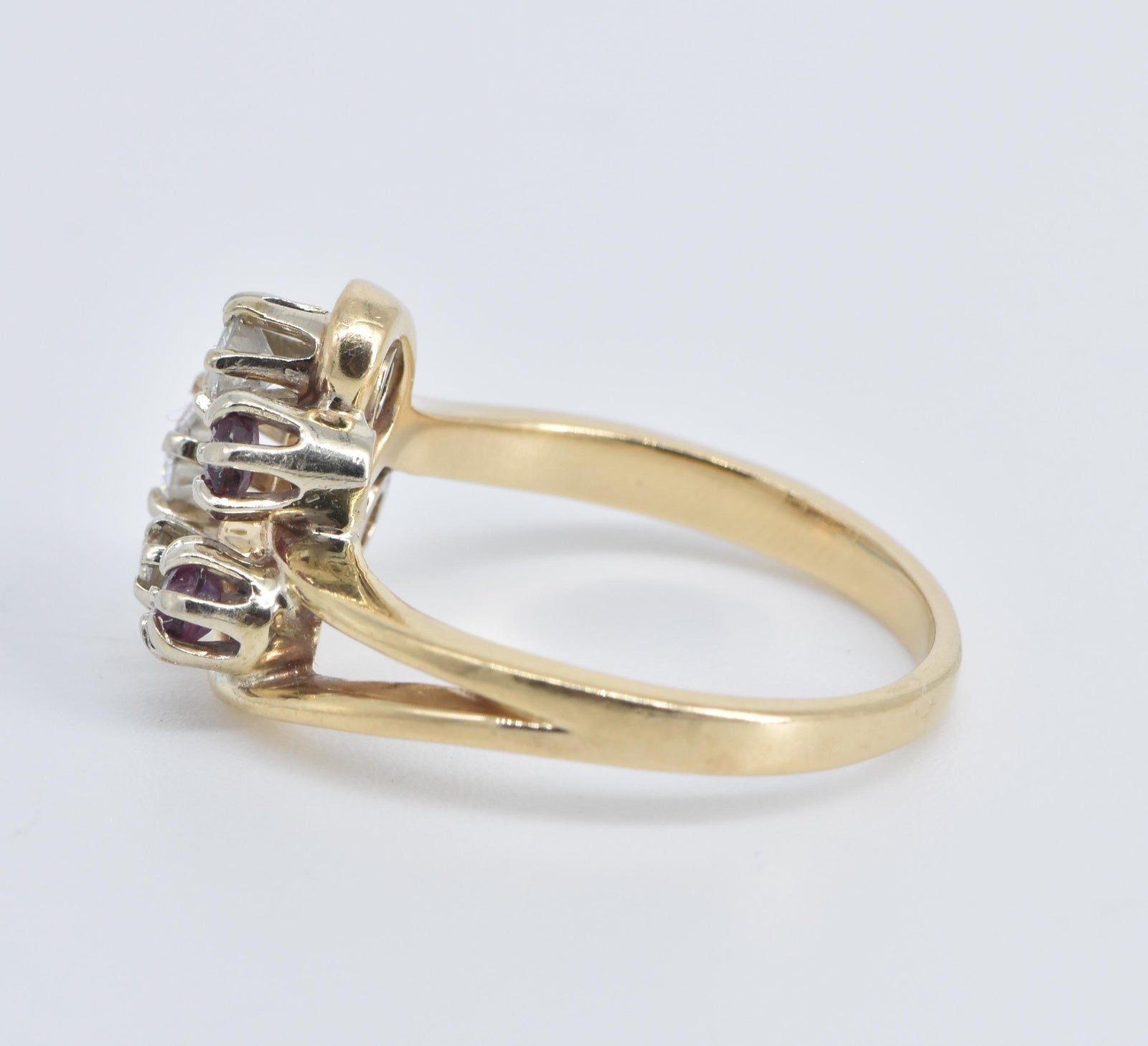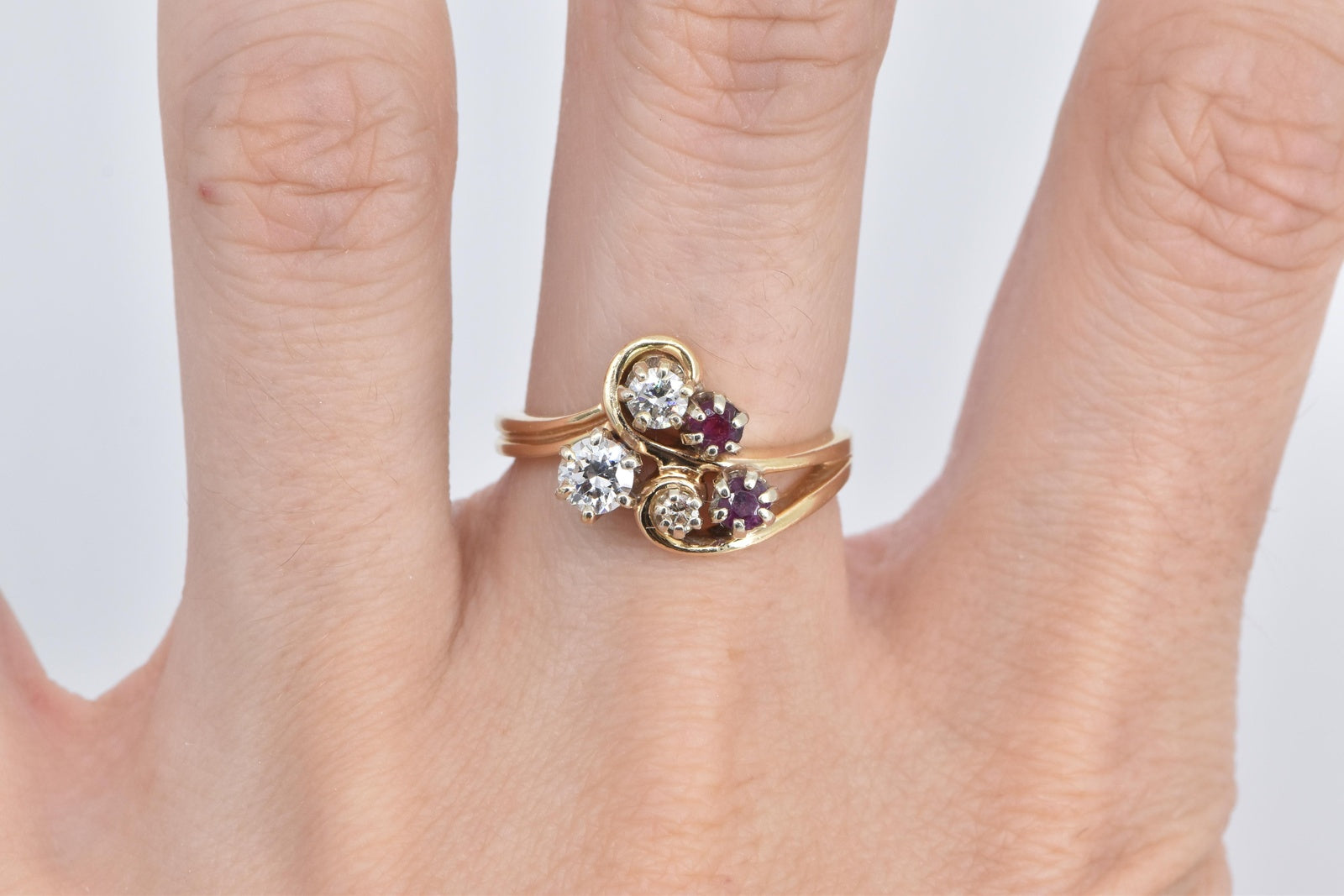·Item: 14K 0.71 Ctw Natural Diamond Ruby Swirl Statement Ring Size 7.75 Yellow Gold