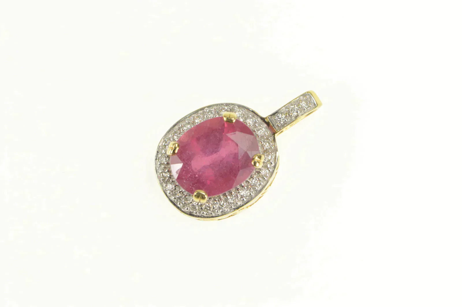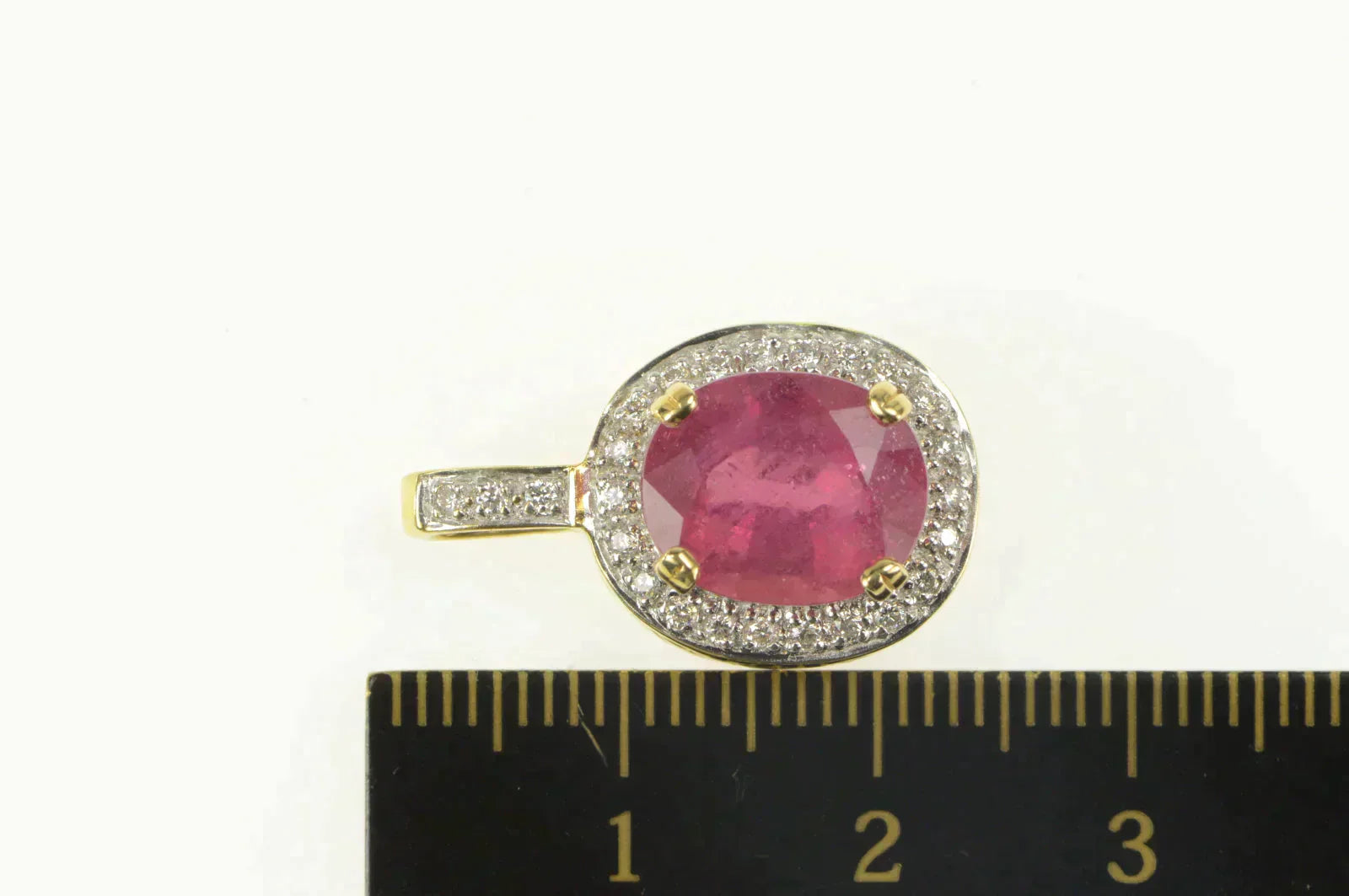 ·Item: 18K 4.76 Ctw Natural Ruby Diamond Halo Designer Pendant Yellow Gold
