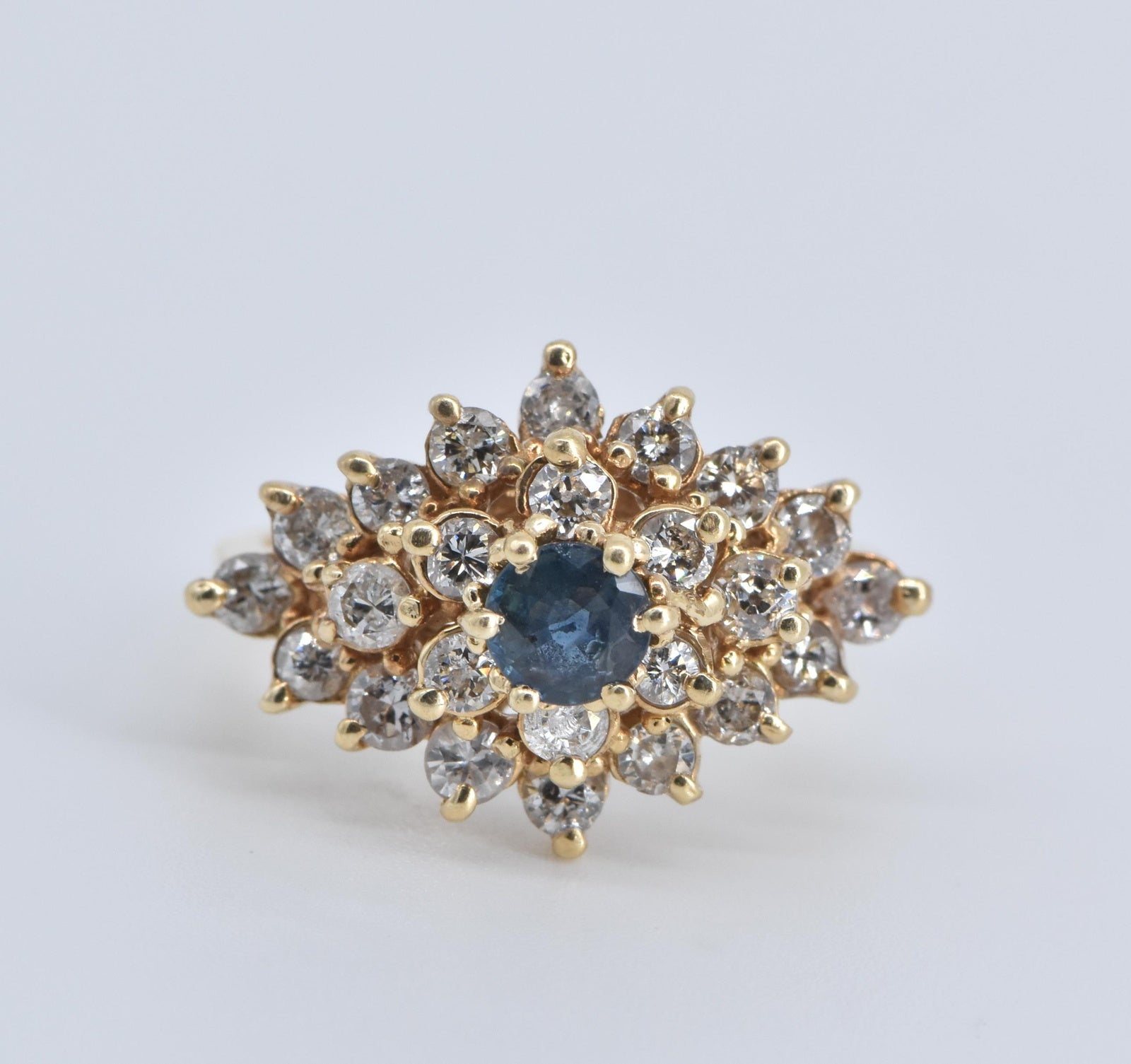 ·Item: 14K 1.10 Ctw Natural Sapphire Diamond Cluster Ring Size 6.75 Yellow Gold