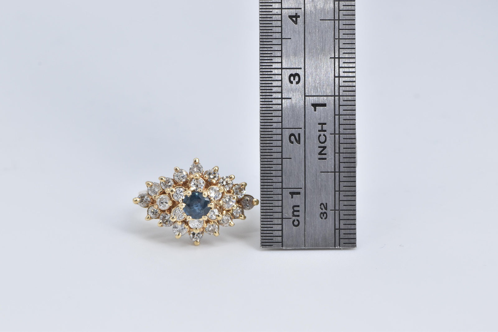 14K 1.10 Ctw Natural Sapphire Diamond Cluster Ring Yellow Gold