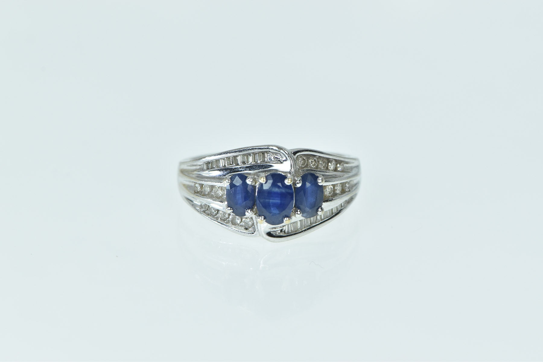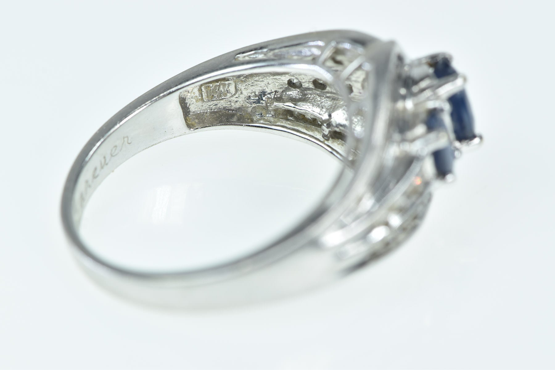 ·Item: 14K Oval Natural Sapphire Diamond Bypass Ring Size 8 White Gold