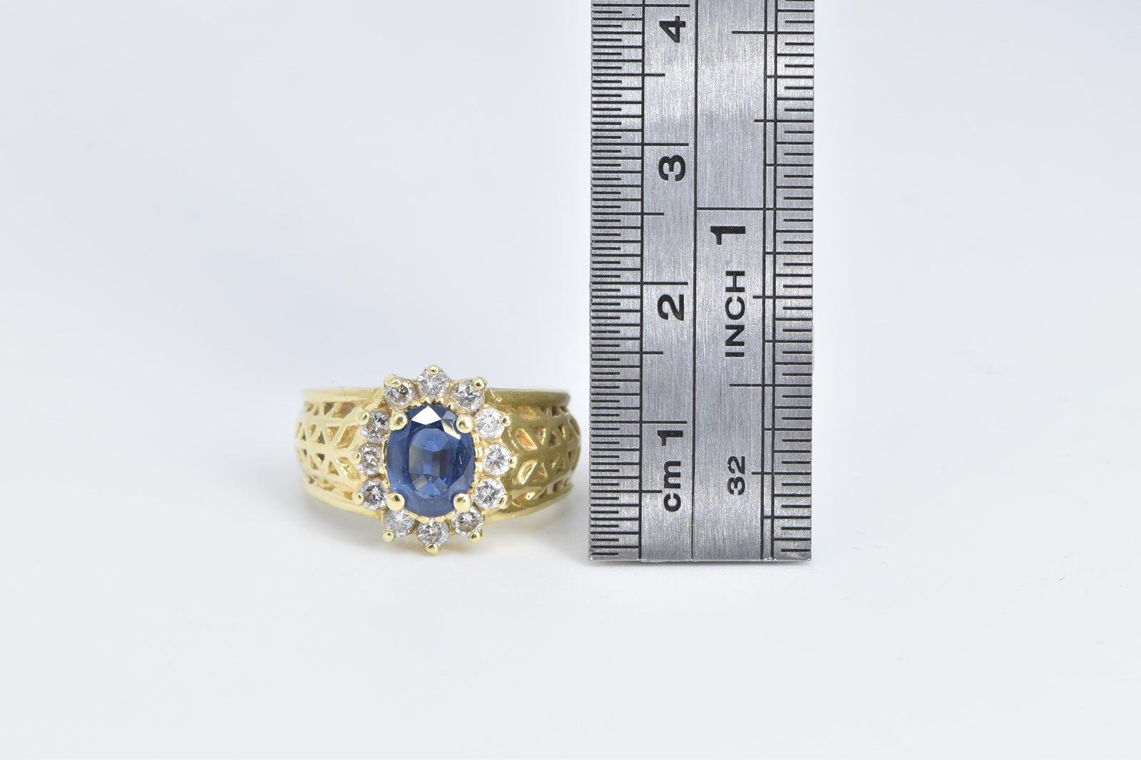 ·Item: 18K 2.10 Ctw Oval Natural Sapphire Diamond Ring Size 7 Yellow Gold