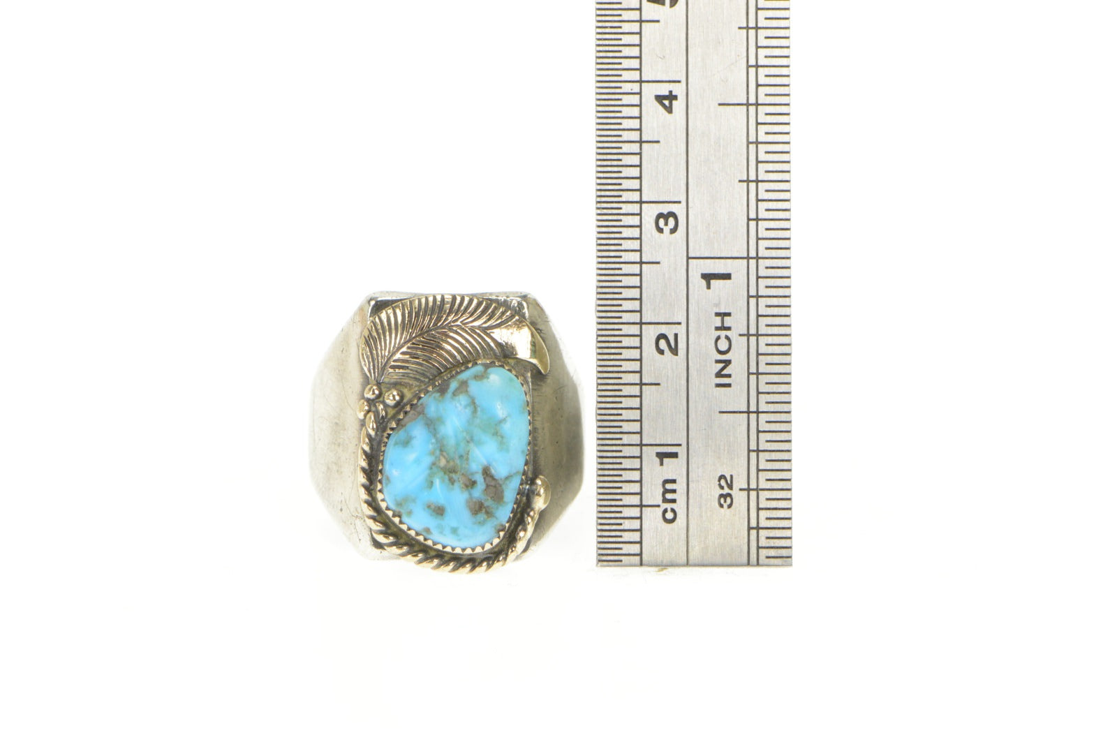 ·Item: Sterling Silver 14K JM Native American Turquoise Navajo Ring Size 11.25