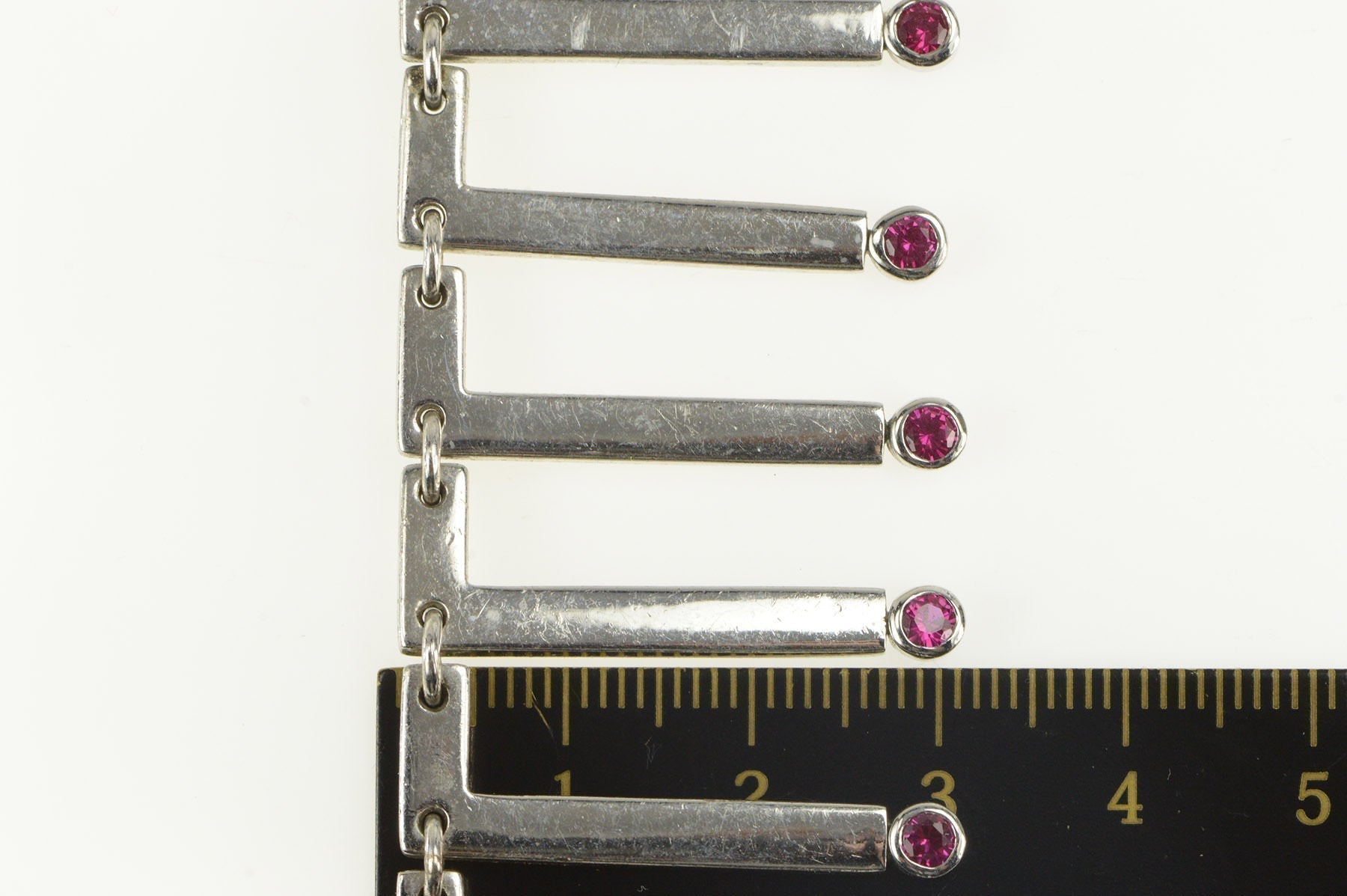 ·Item: Sterling Silver Crawford Syn. Ruby Bar Fringe Collar Necklace 17"