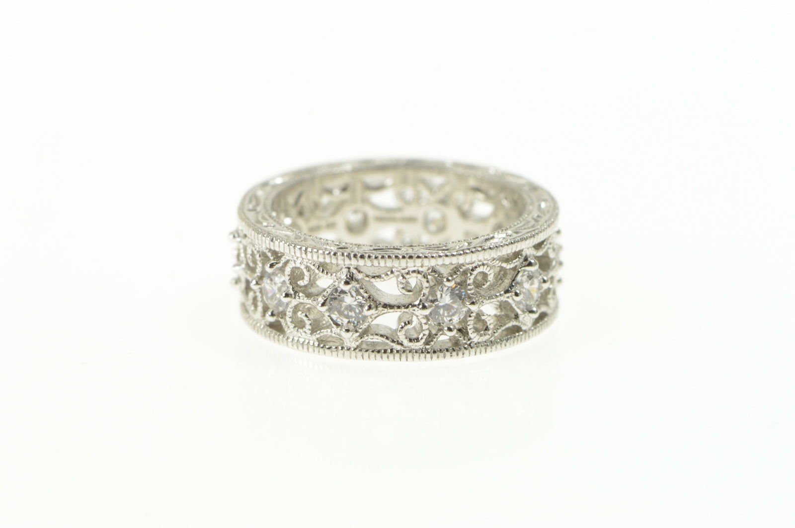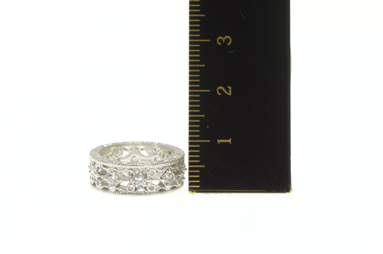 Sterling Silver Elaborate Filigree Ornate Wedding Band Ring