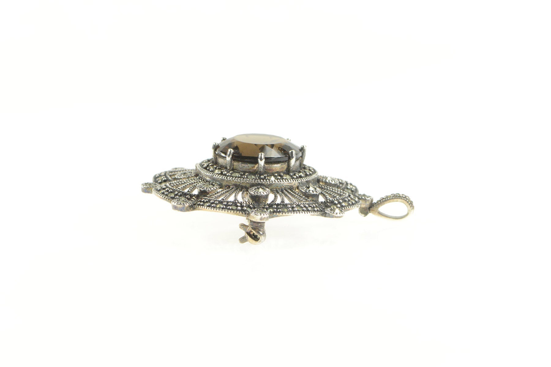 ·Item: Sterling Silver Elaborate Smoky Quartz Filigree Marcasite Pendant/Pin