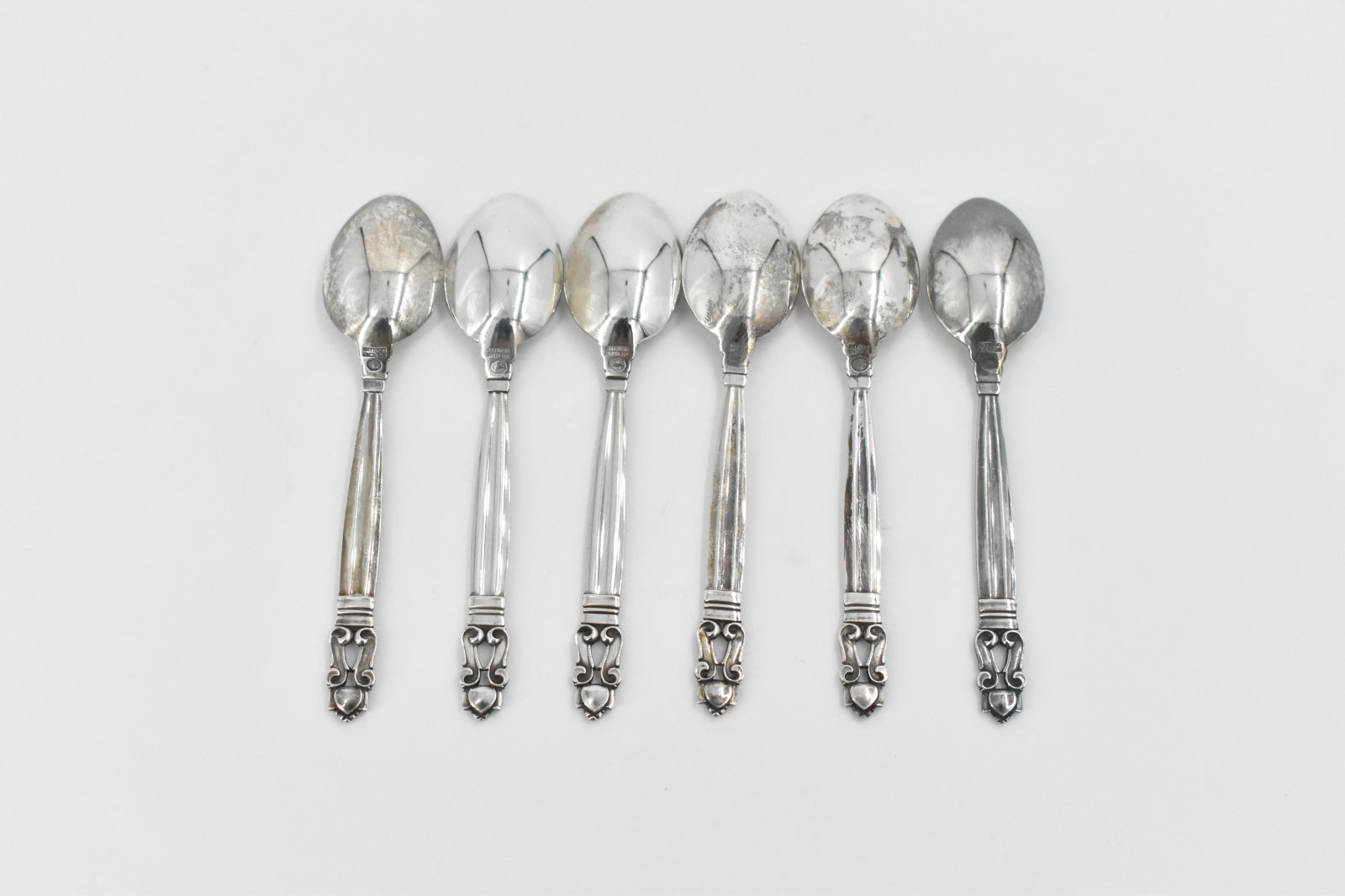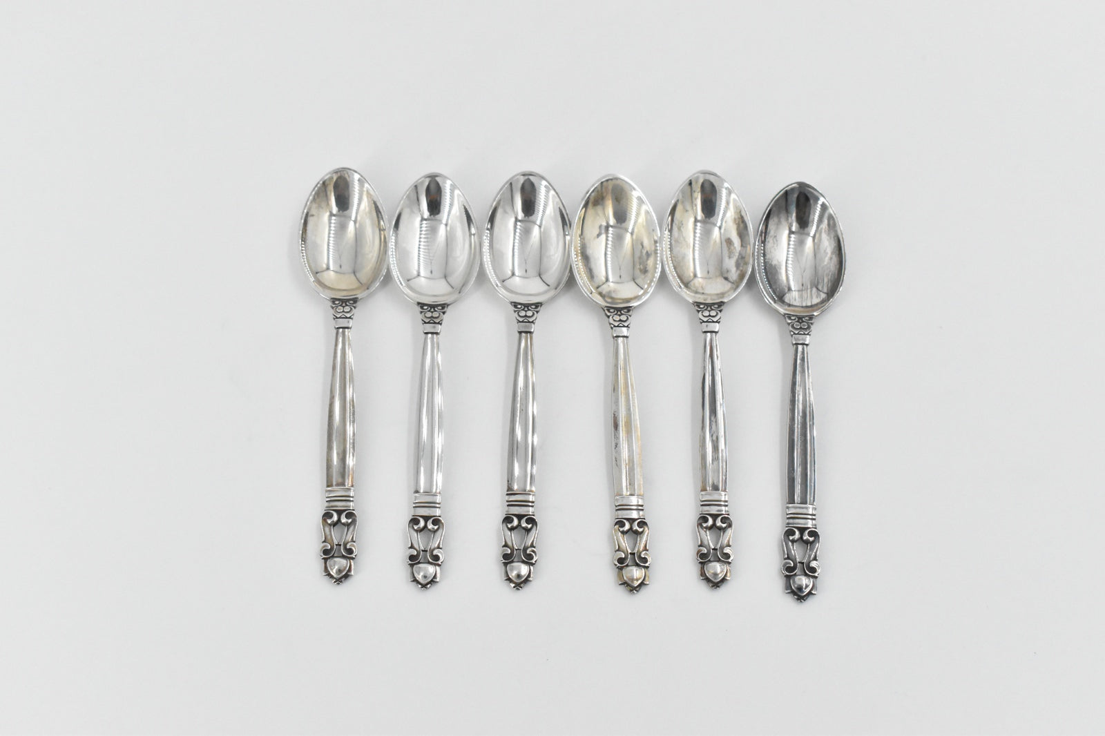 ·Item: Sterling Silver Georg Jensen Acorn 6 pc Demitasse