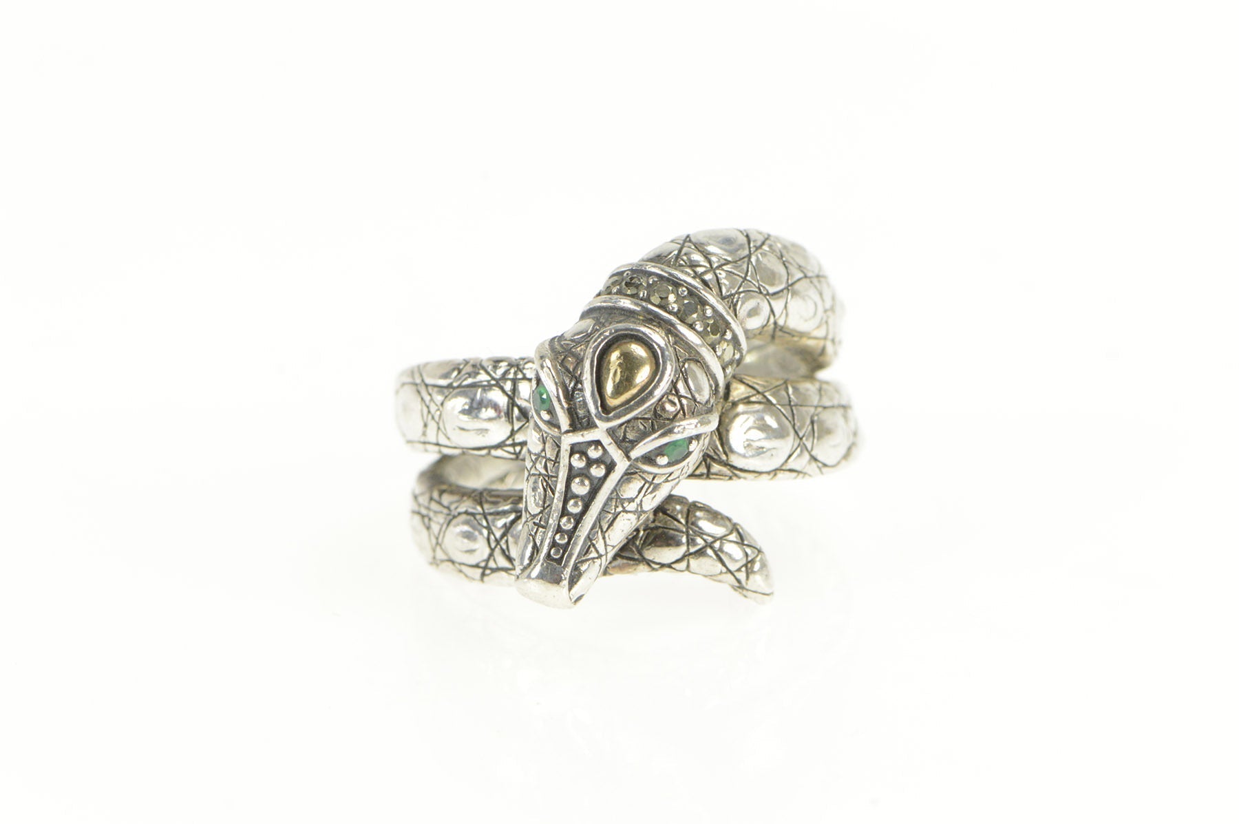 Sterling Silver John Hardy 14K Emerald Cayman Alligator Ring