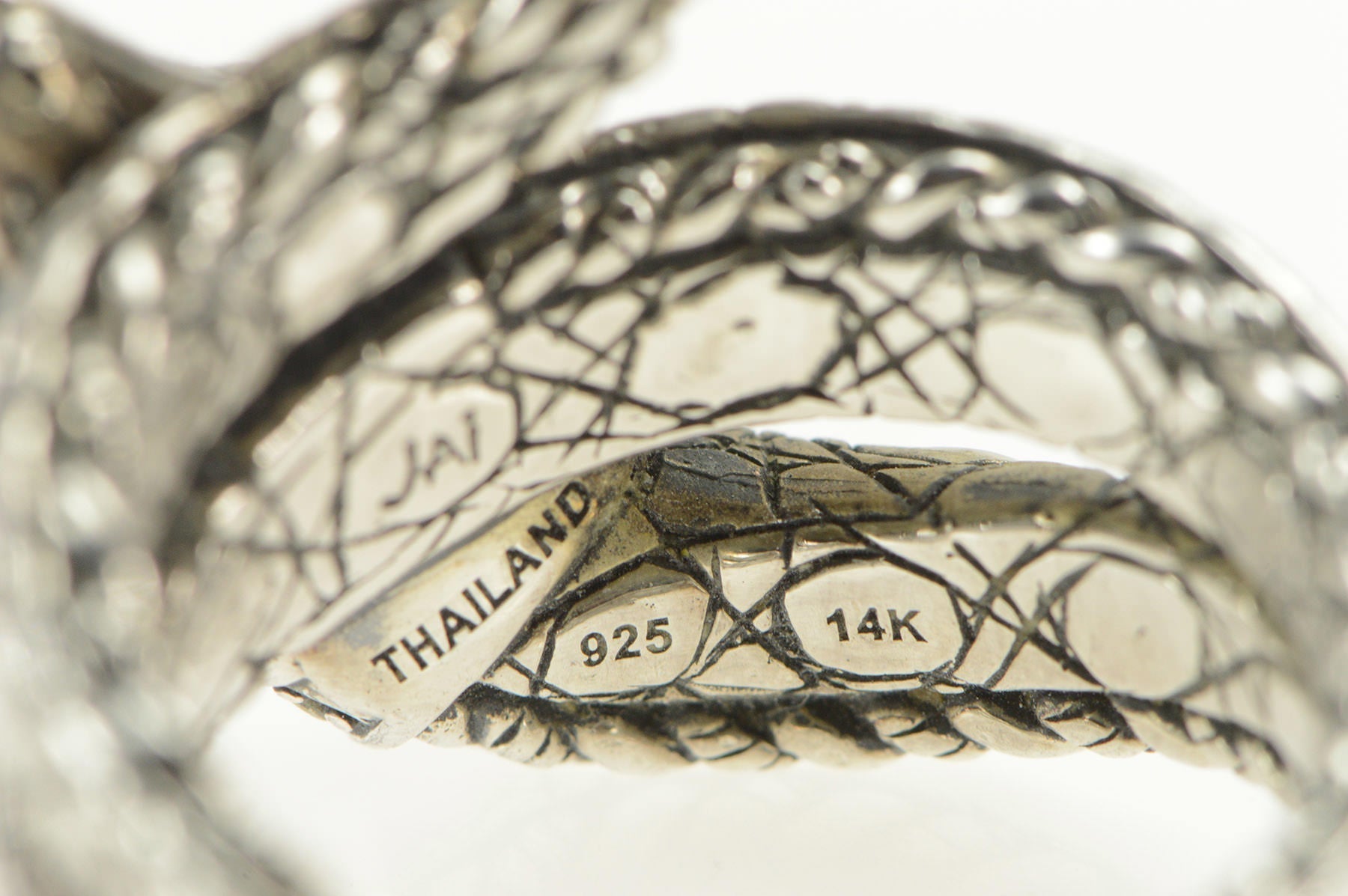 ·Item: Sterling Silver John Hardy 14K Emerald Cayman Alligator Ring Size 10.25