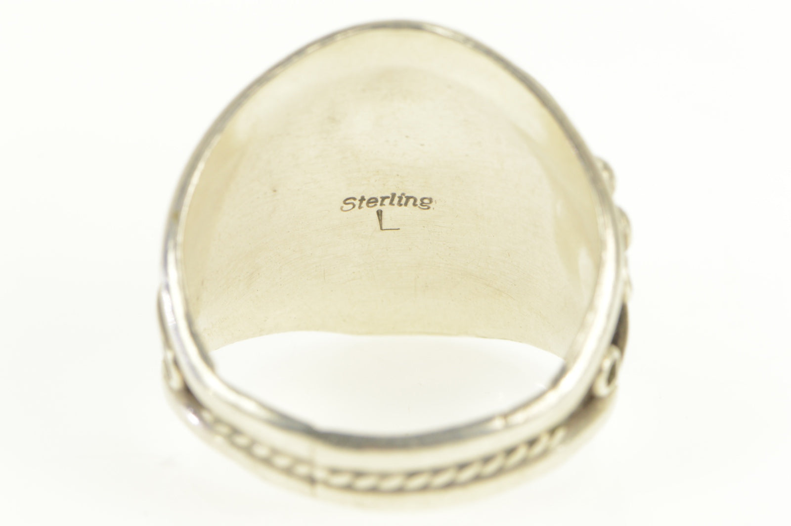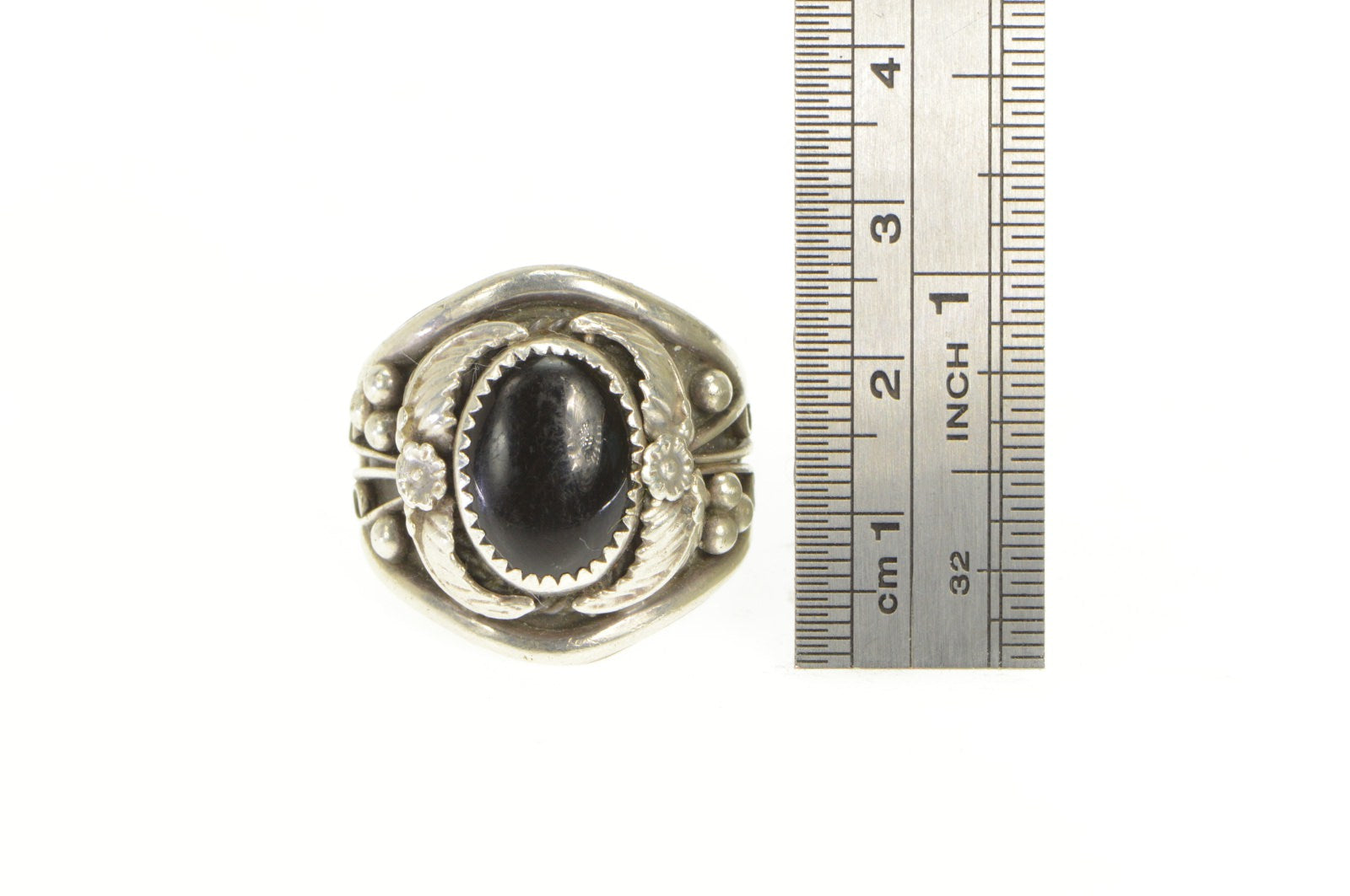 ·Item: Sterling Silver Native American Black Onyx L Signed Navajo Ring Size 12