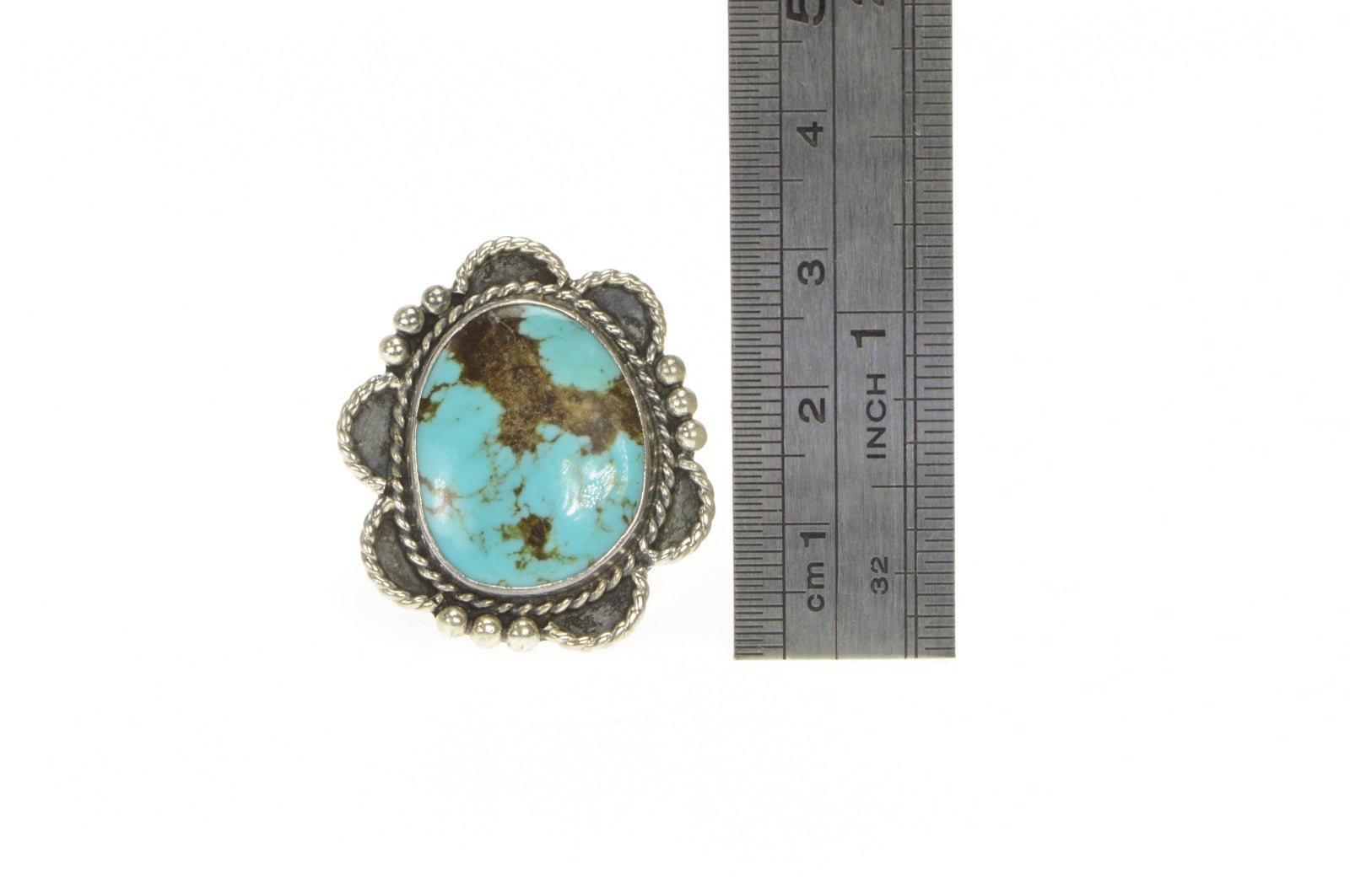 ·Item: Sterling Silver Navajo Ornate Turquoise Native American Ring Size 5.75