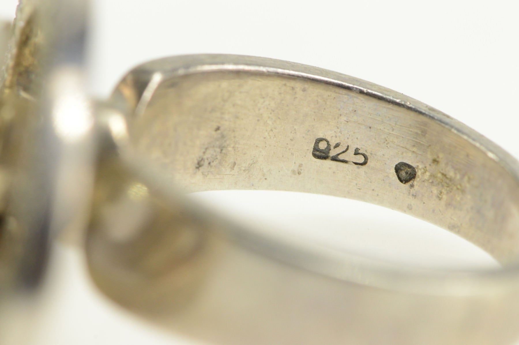 ·Item: Sterling Silver Oval Marcasite Layered Spinner Statement Ring Size 7