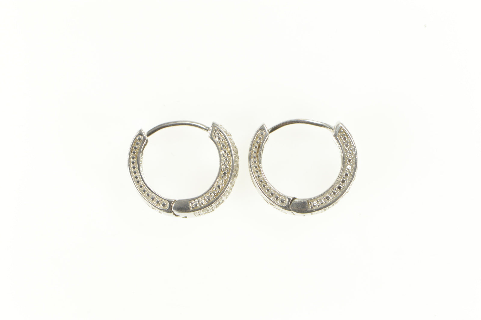 ·Item: Sterling Silver Pave Diamond Filigree Ornate Statement Hoop Earrings