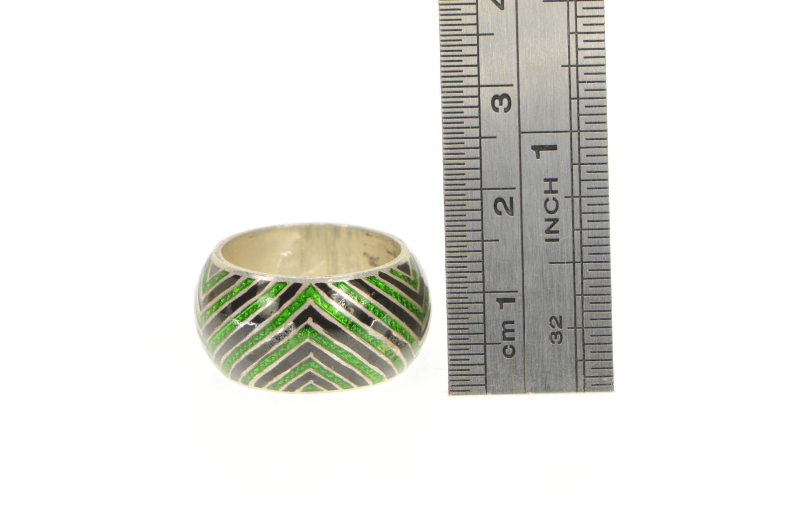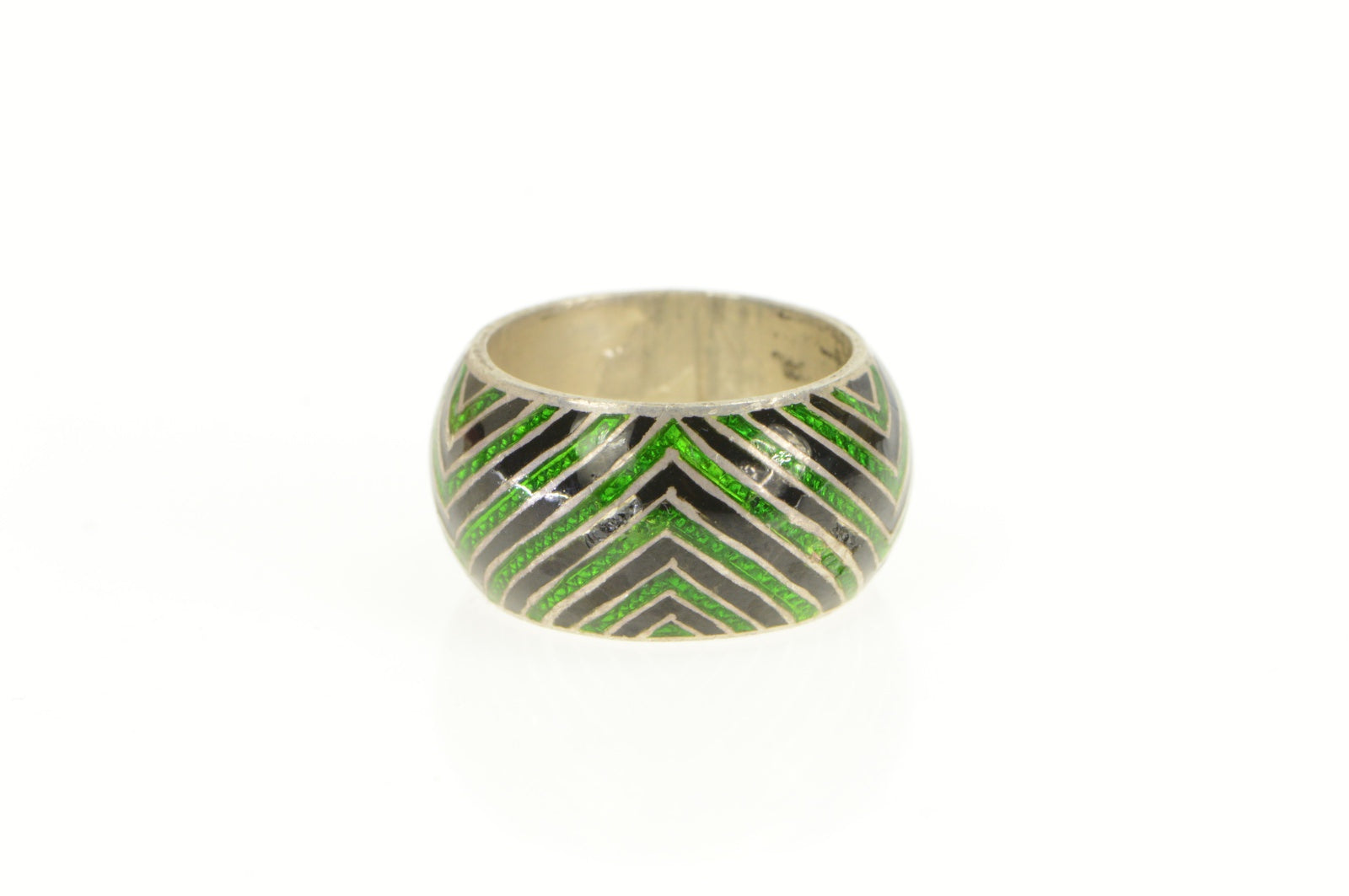 ·Item: Sterling Silver Retro Green Blue Enamel Zig Zag Domed Ring Size 7.25