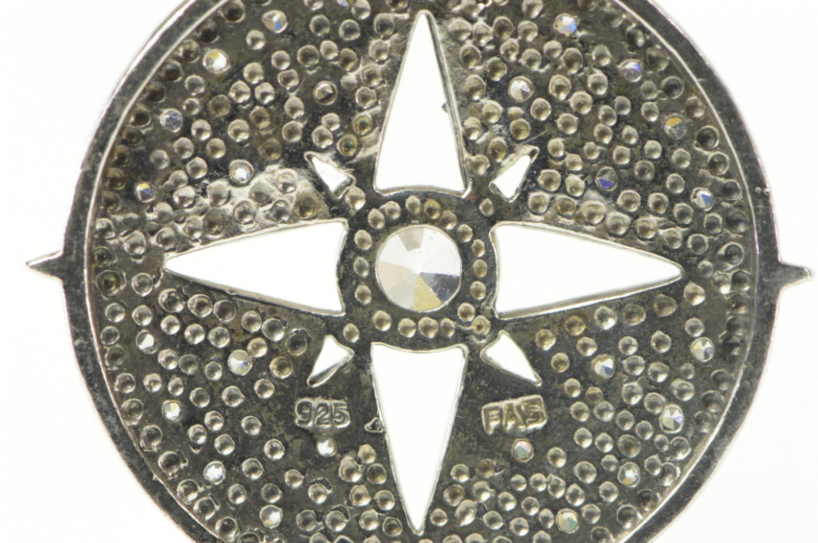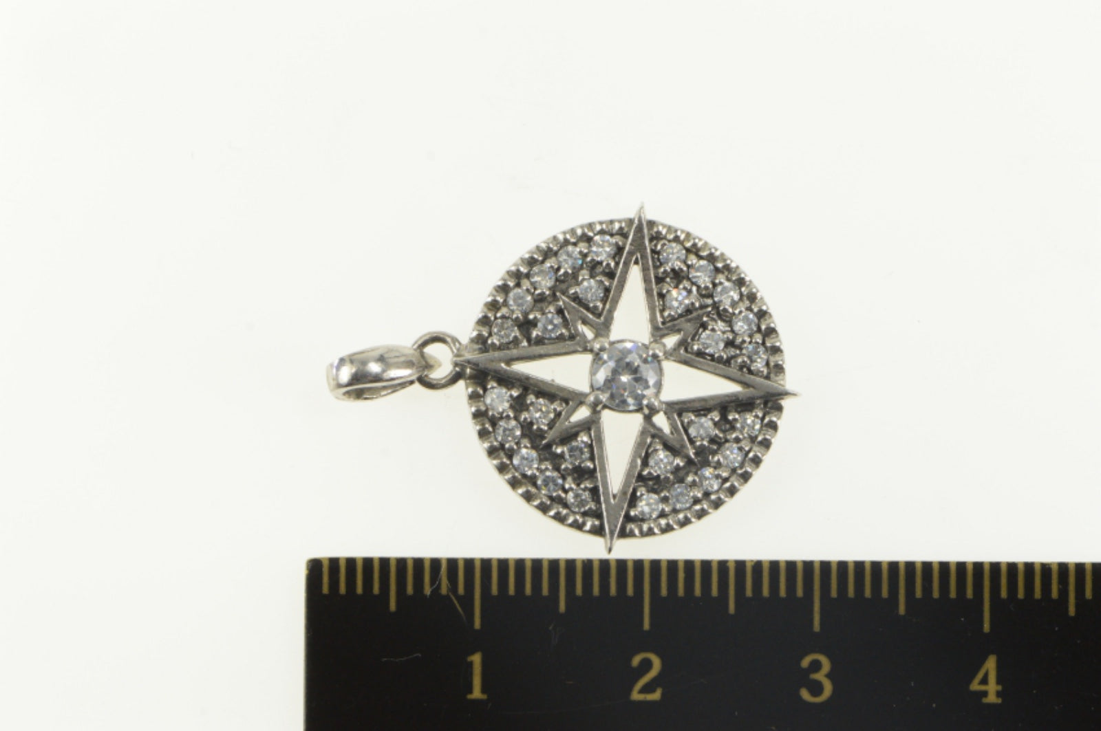 ·Item: Sterling Silver Round North Star Compass Pave CZ Round Pendant