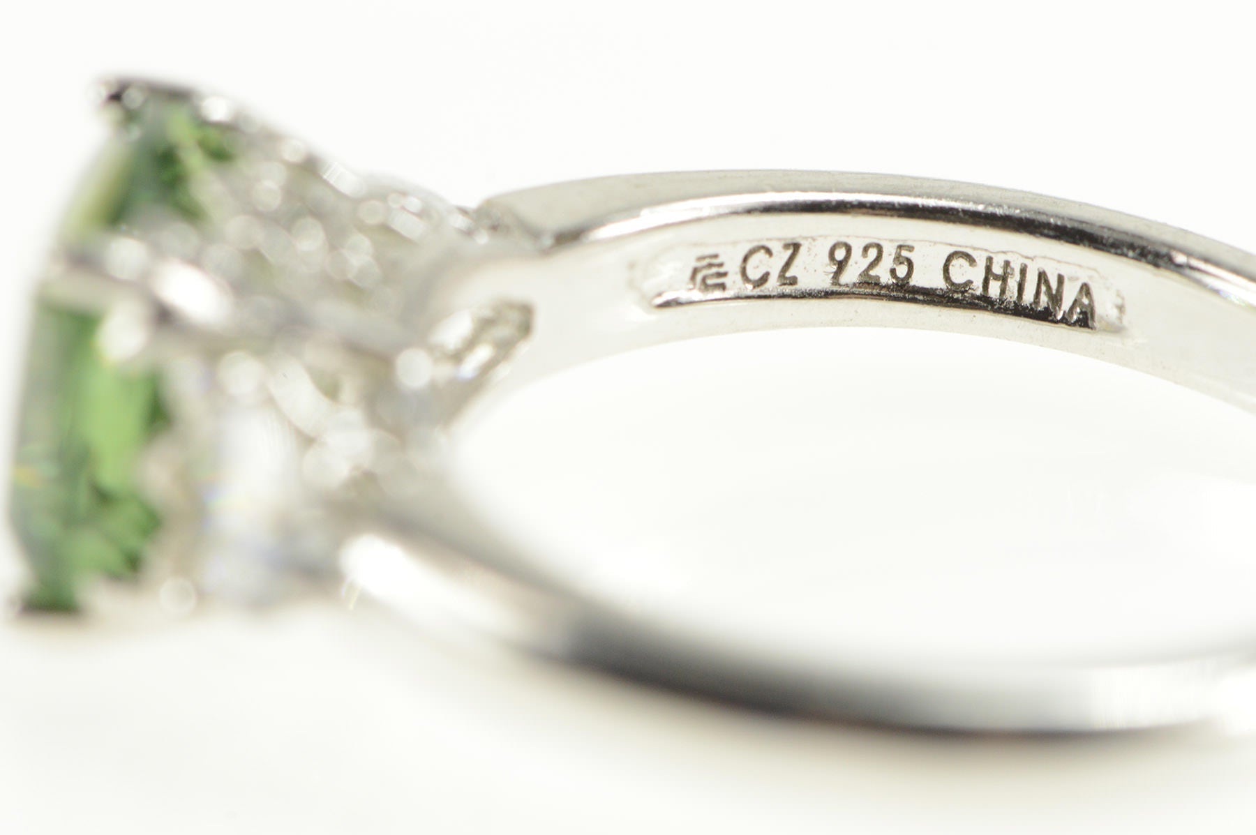 ·Item: Sterling Silver Three Stone Syn. Prasiolite CZ Statement Ring Size 6