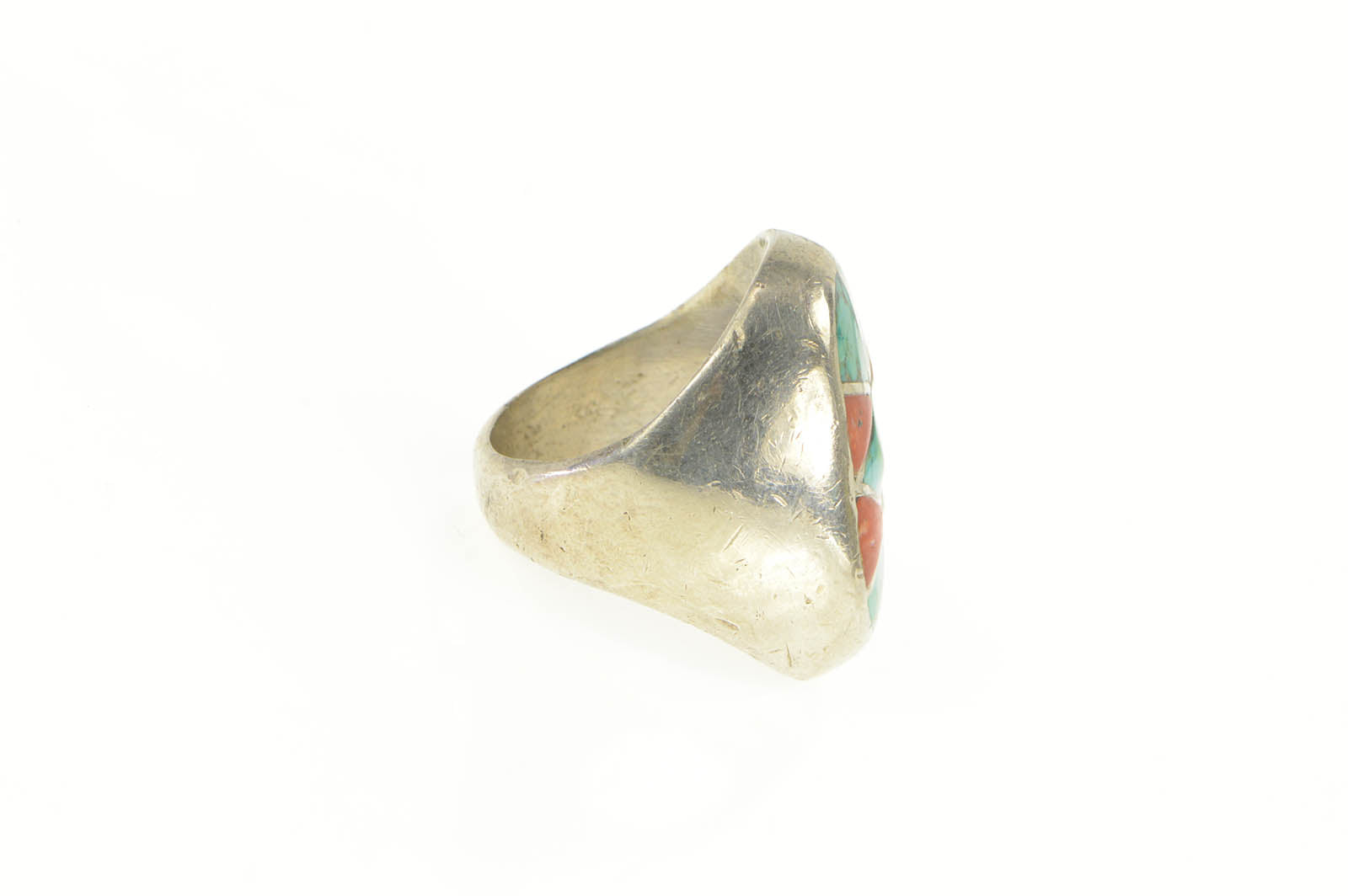 ·Item: Sterling Silver Turquoise Coral Oval Native American Men's Ring Size 9.75