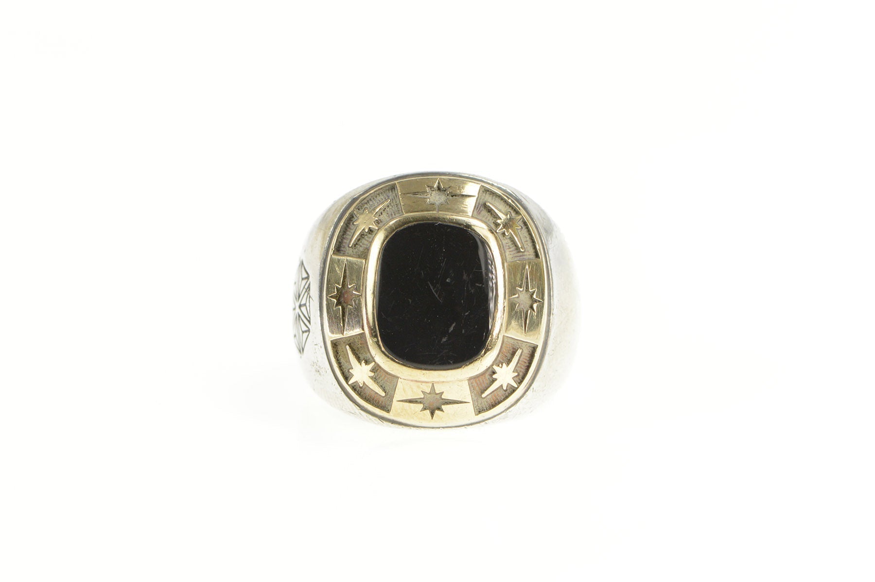 ·Item: Sterling Silver Two Tone 14K Gold Star Pattern Black Onyx Ring Size 8.25