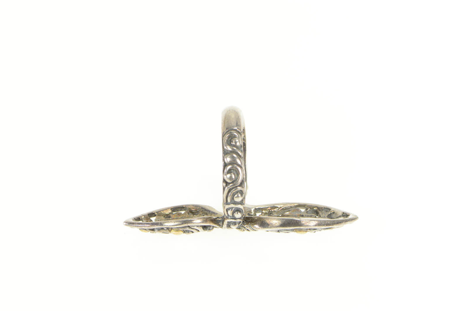 ·Item: Sterling Silver Two Tone 18k Gold Filigree CZ Bypass Vine Ring Size 6.75