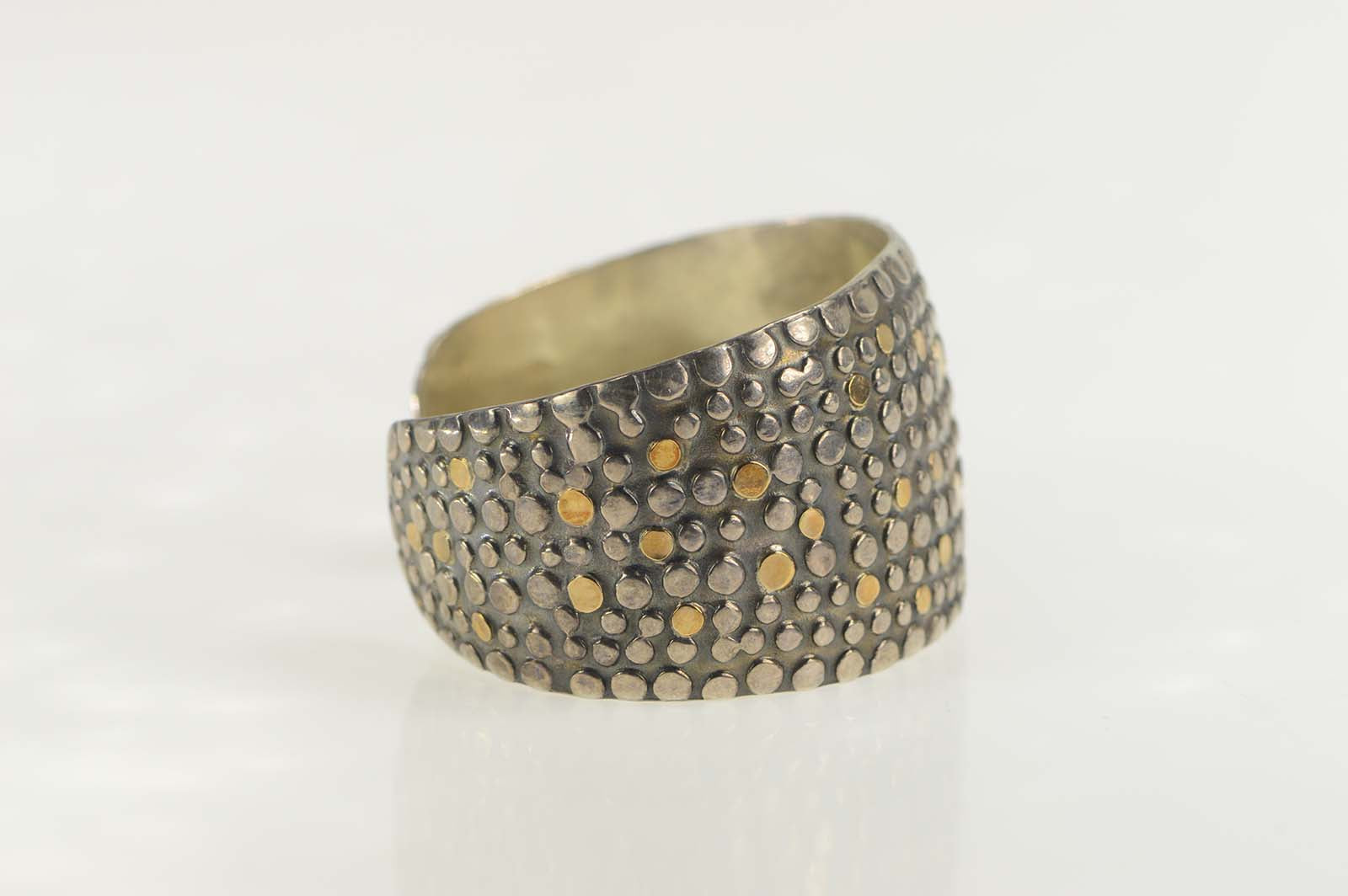 ·Item: Sterling Silver Two Tone Dotted Pattern Geometric Cuff Bracelet 7"