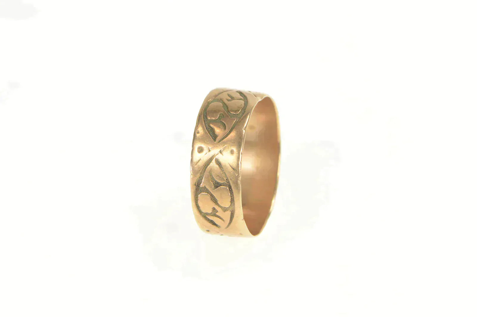 ·Item: 10K 7.6mm Victorian Floral Rose Pattern Band Ring Size 9.75 Yellow Gold