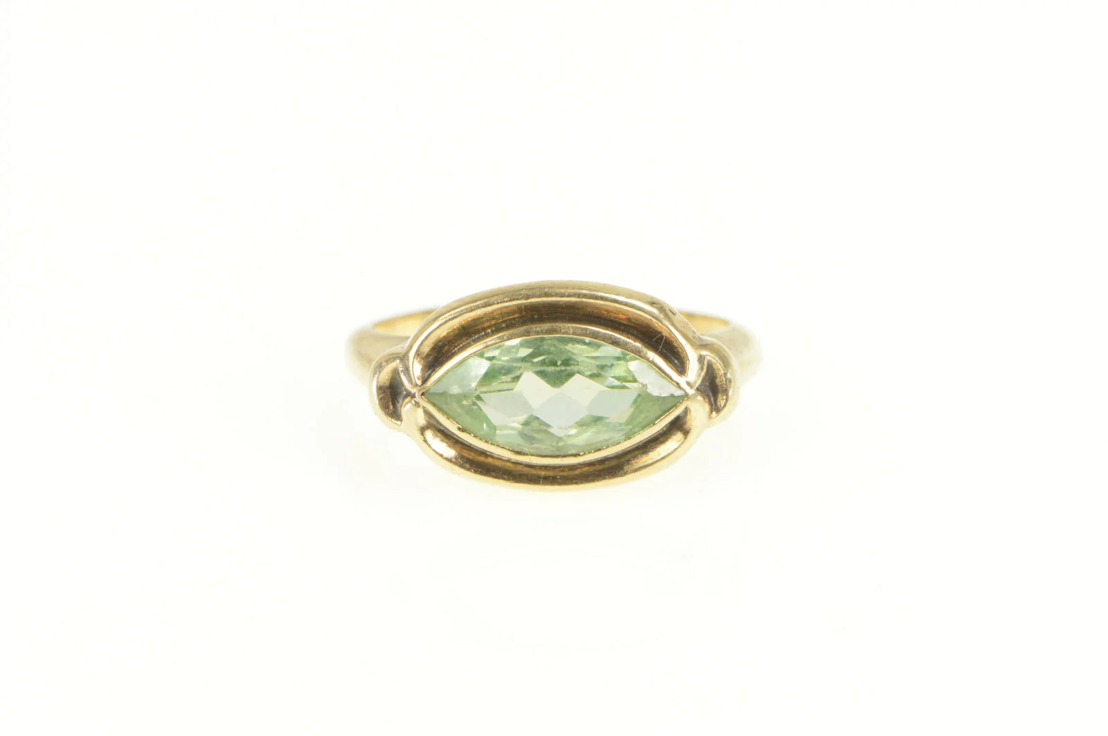 ·Item: 10K Art Deco Men's Lime Quartz Marquise Ornate Ring Size 4 Yellow Gold