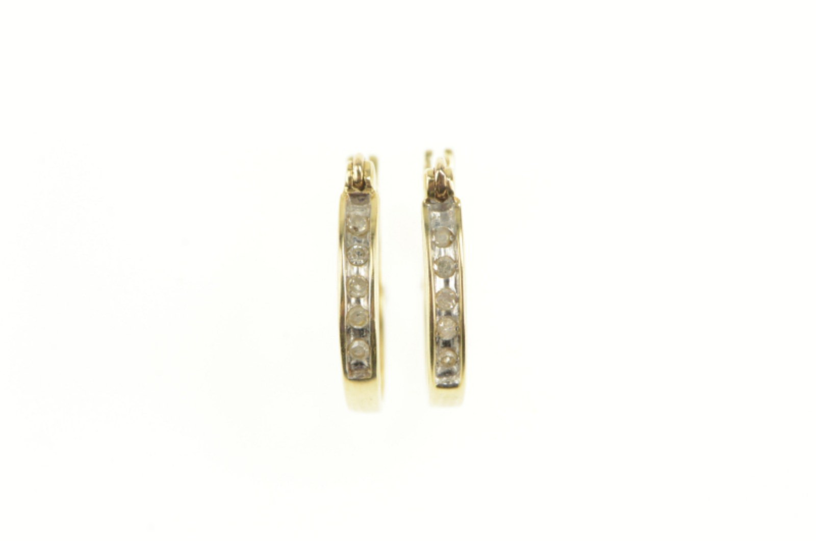 ·Item: 10K Channel Classic Diamond Hoop Statement Earrings Yellow Gold