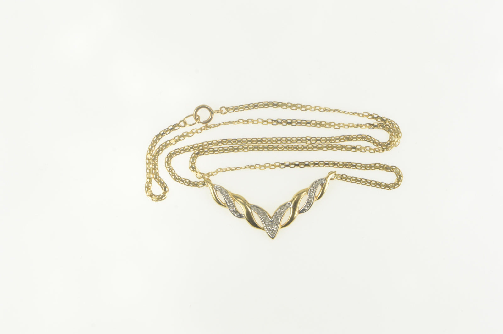 ·Item: 10K Chevron Twist Diamond Accent Box Chain Necklace 16.75" Yellow Gold