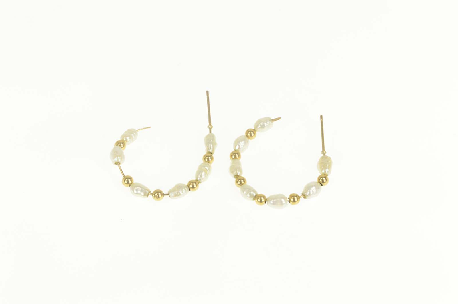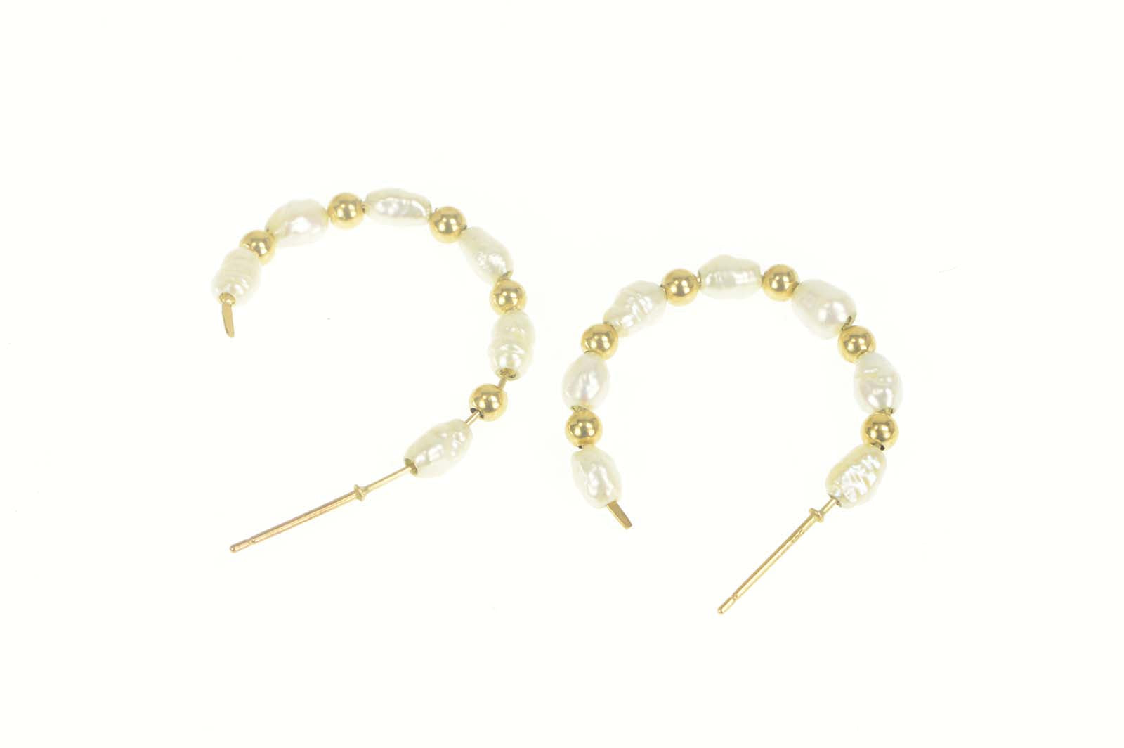 ·Item: 10K Classic Pearl Beaded Semi Hoop Earrings Yellow Gold