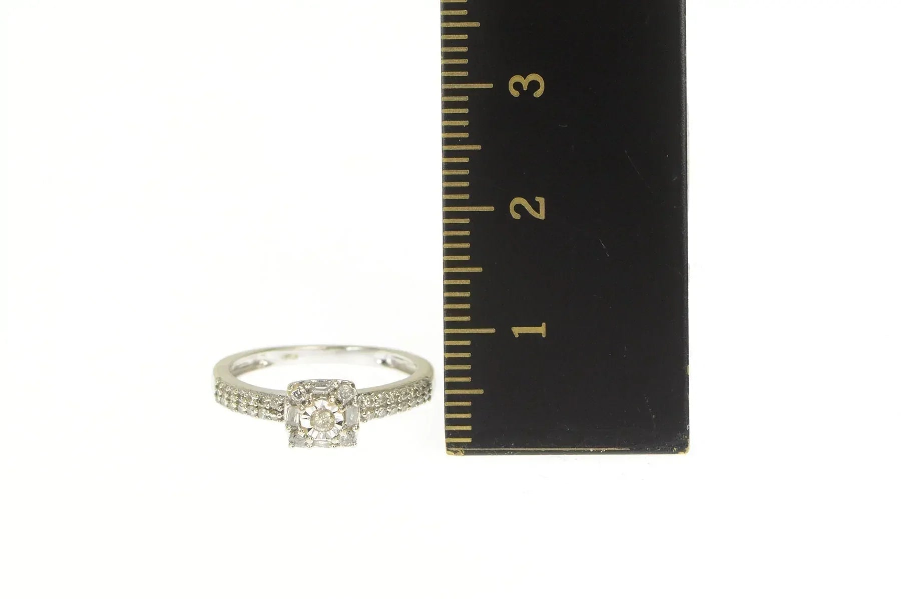 ·Item: 10K Classic Round Diamond Halo Promise Ring Size 5 White Gold