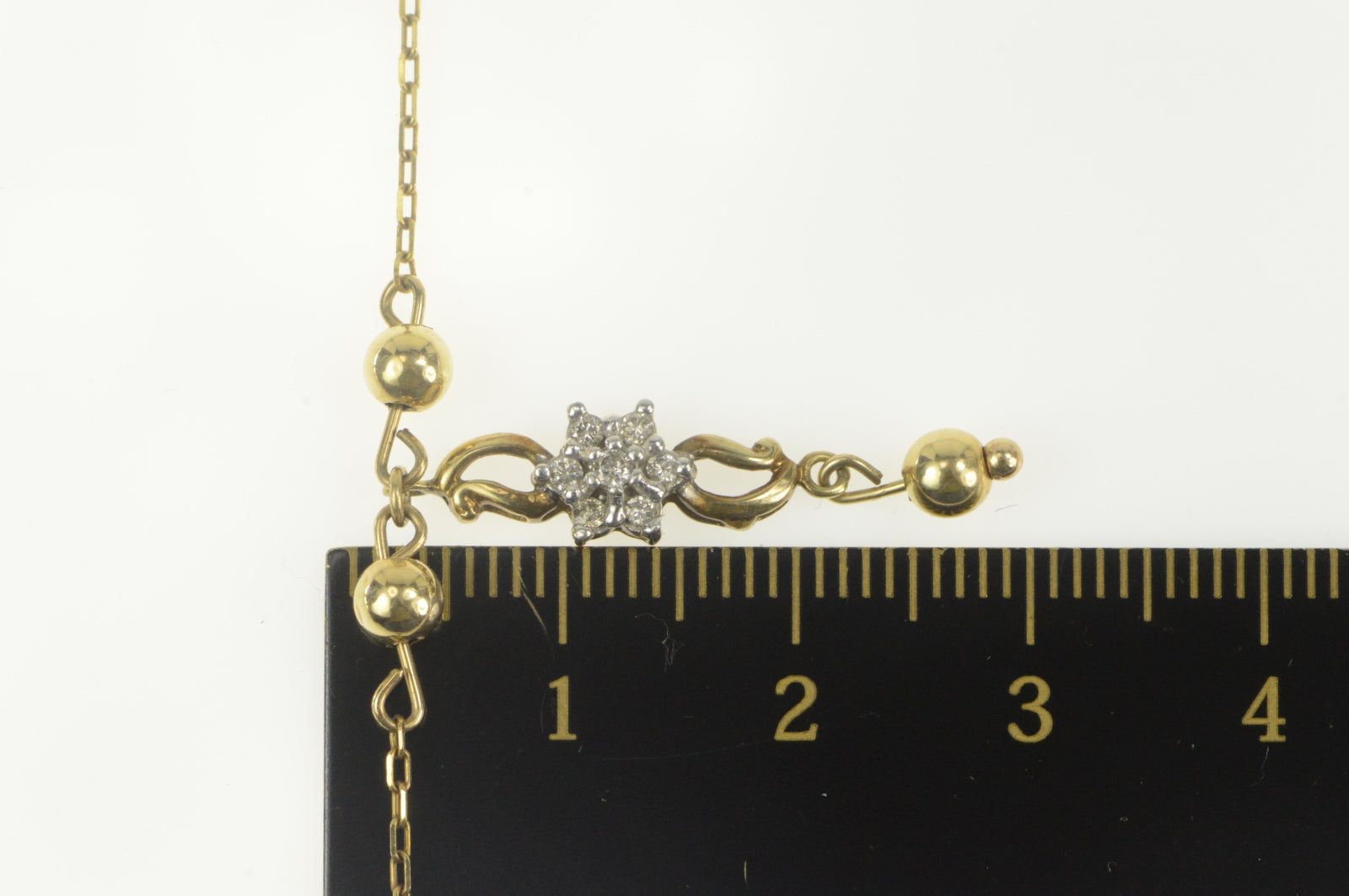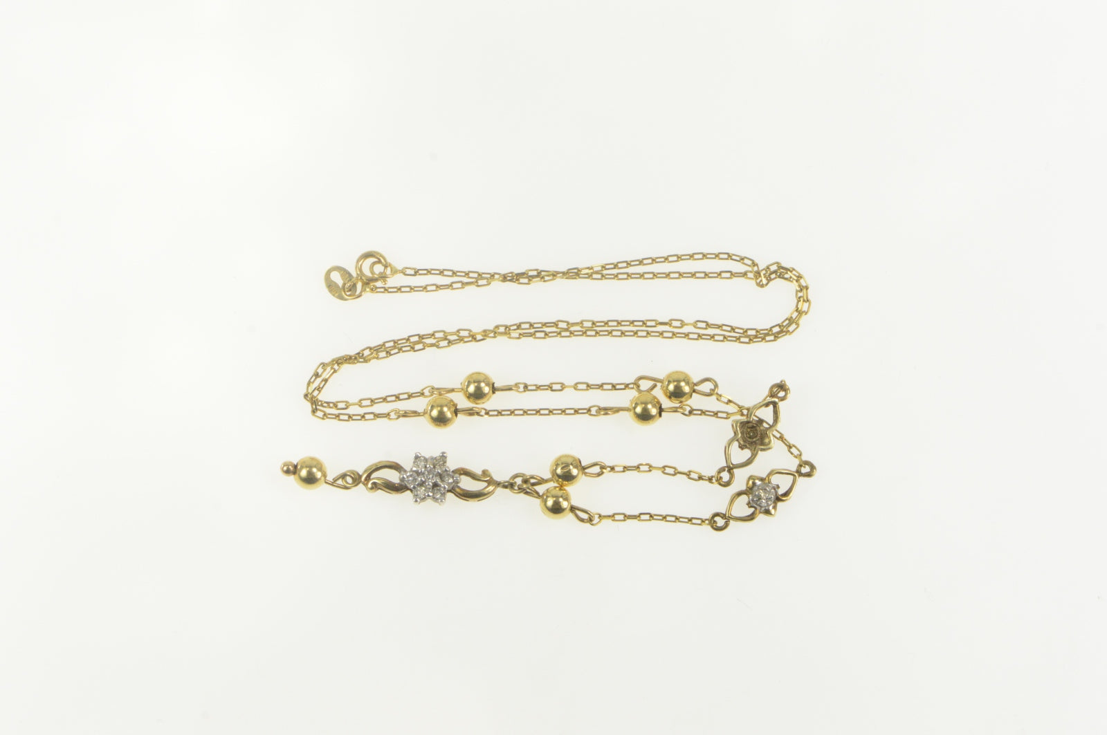 ·Item: 10K Diamond Flower Cluster Drop Chain Necklace 17" Yellow Gold