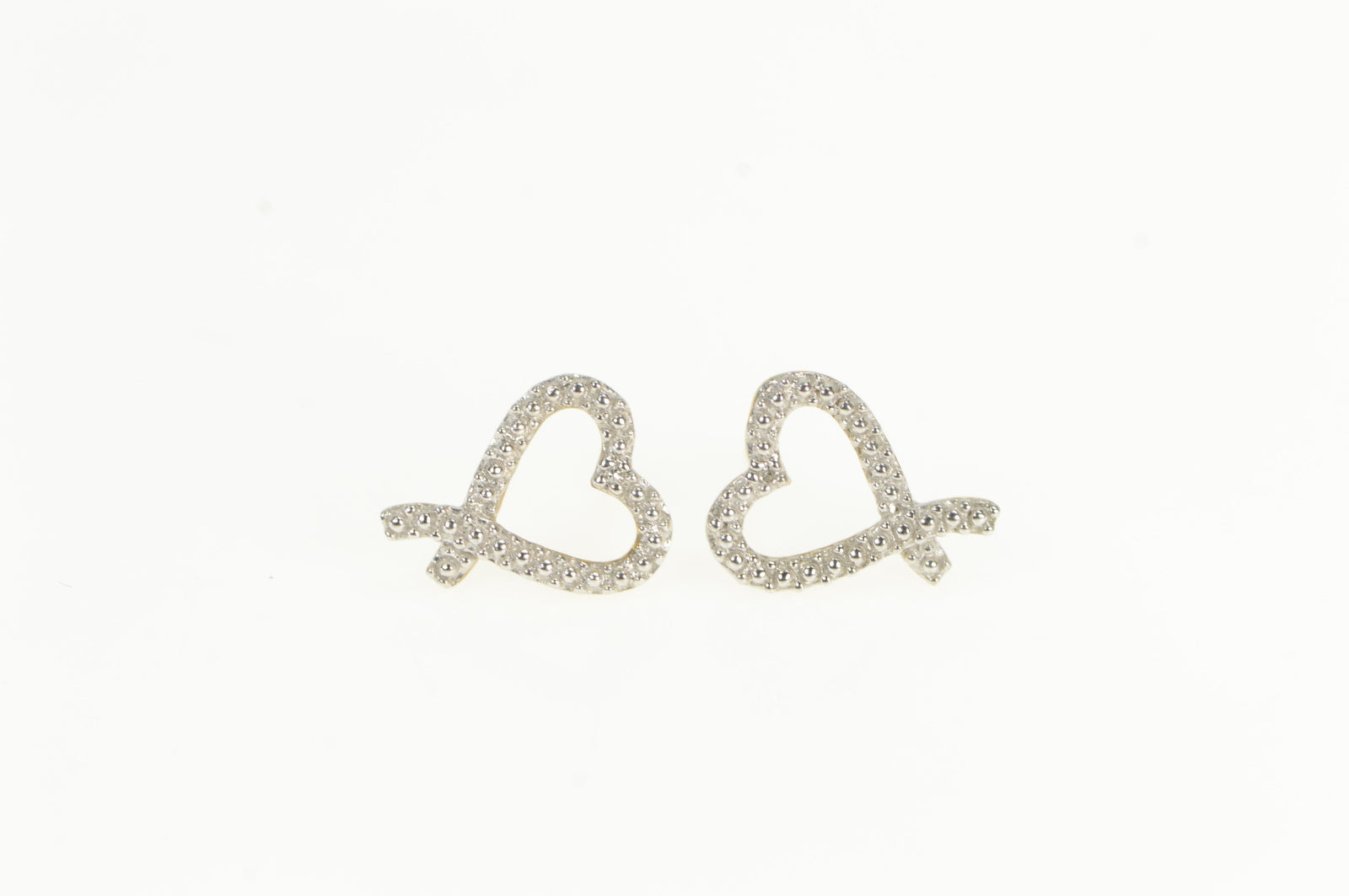 ·Item: 10K Diamond Inset Criss Cross Heart Love Stud Earrings Yellow Gold