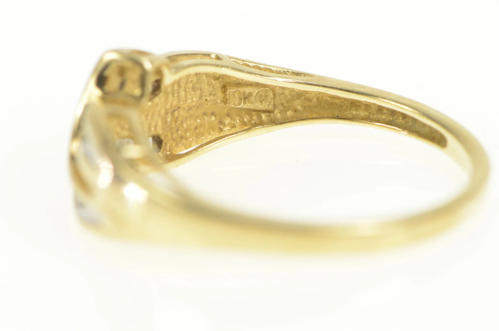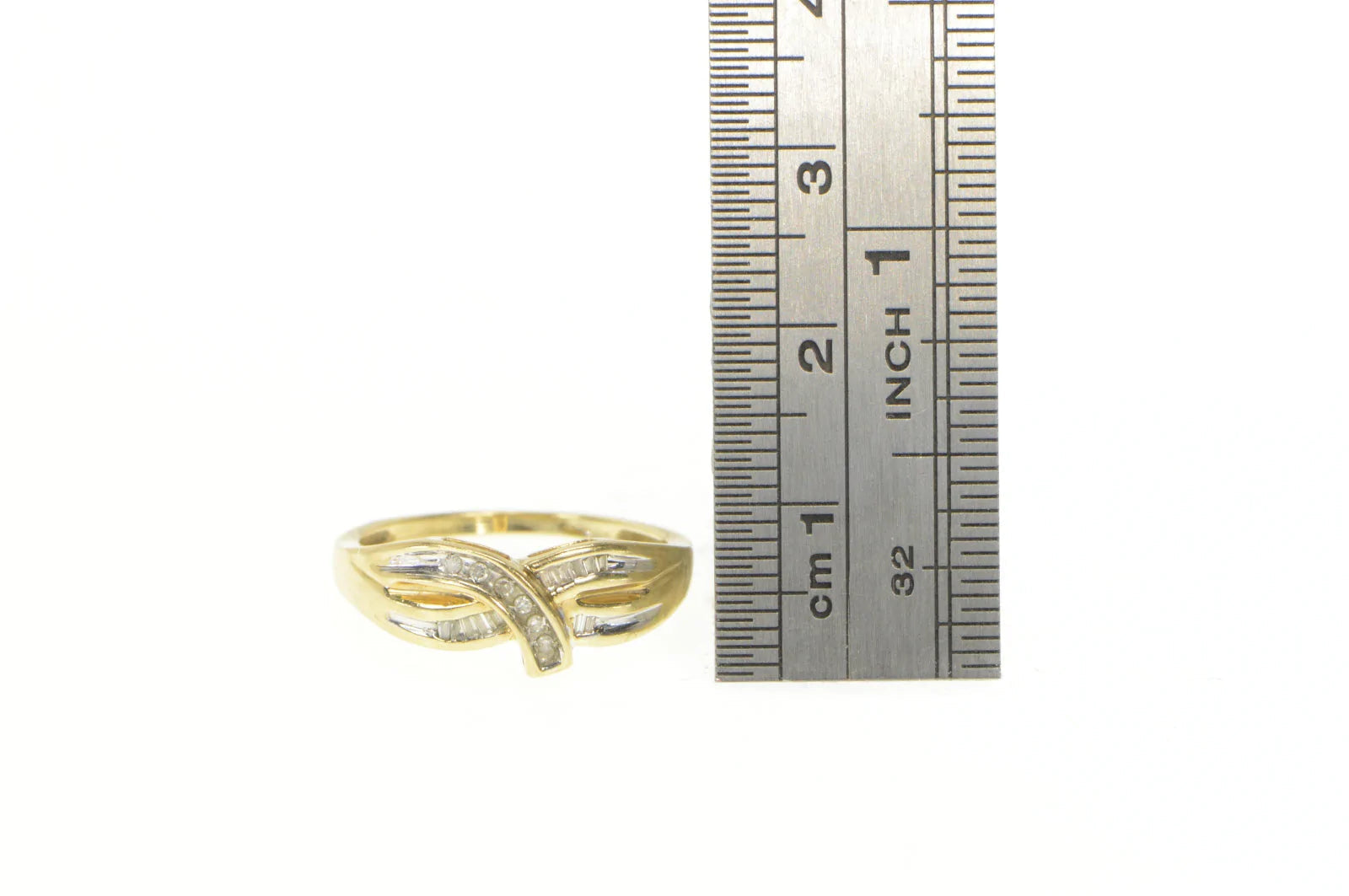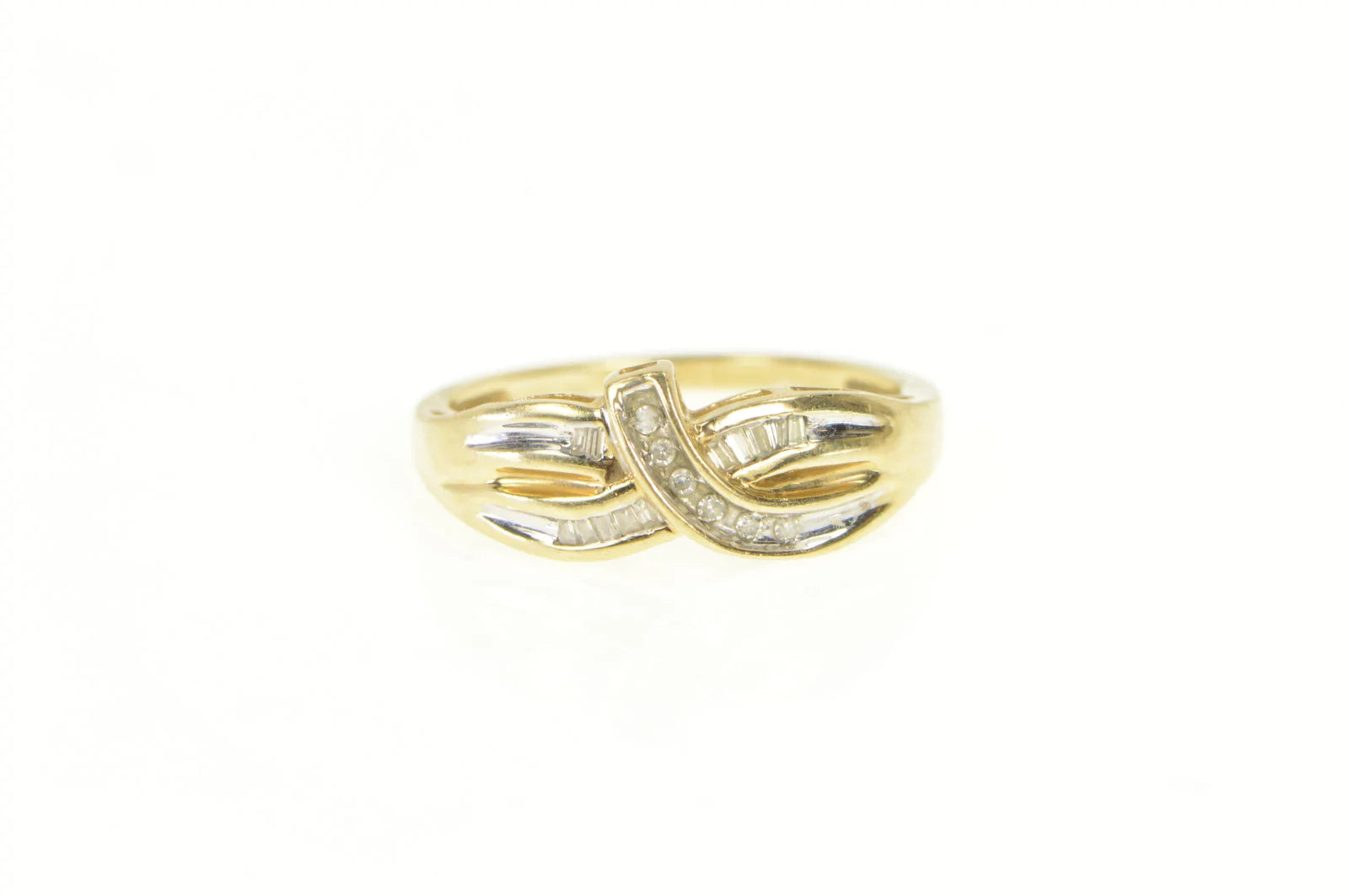 ·Item: 10K Diamond Inset Curvy Criss Cross Band Ring Size 7.25 Yellow Gold