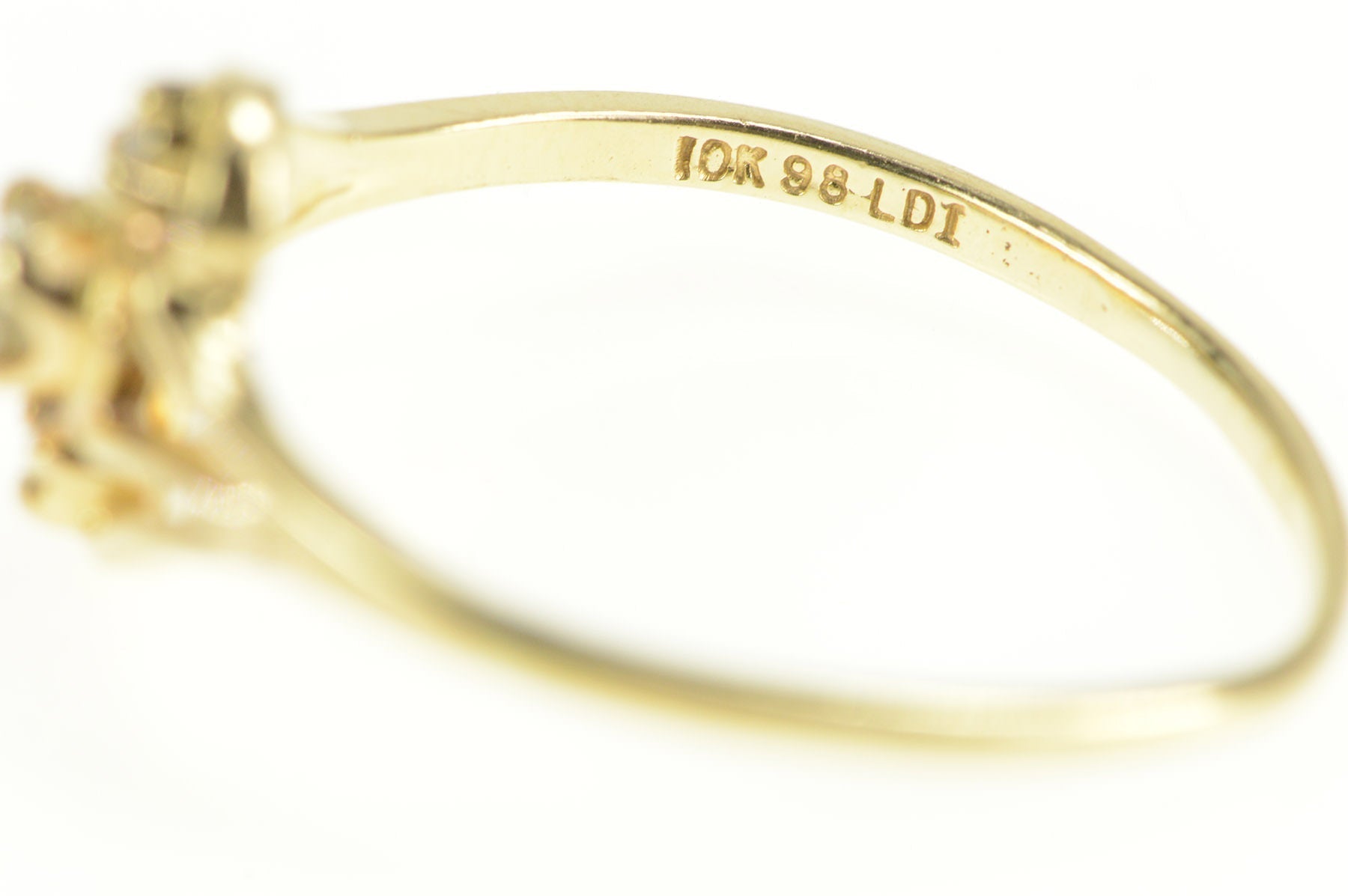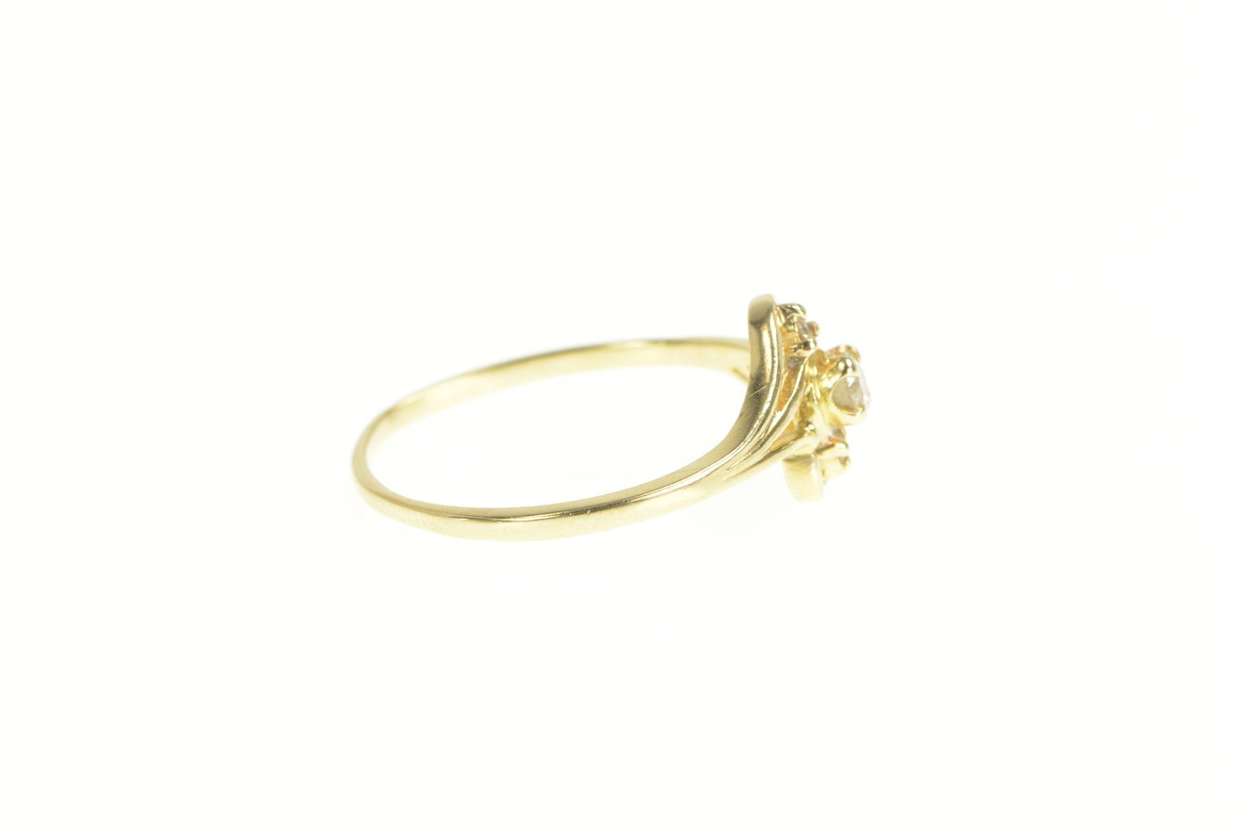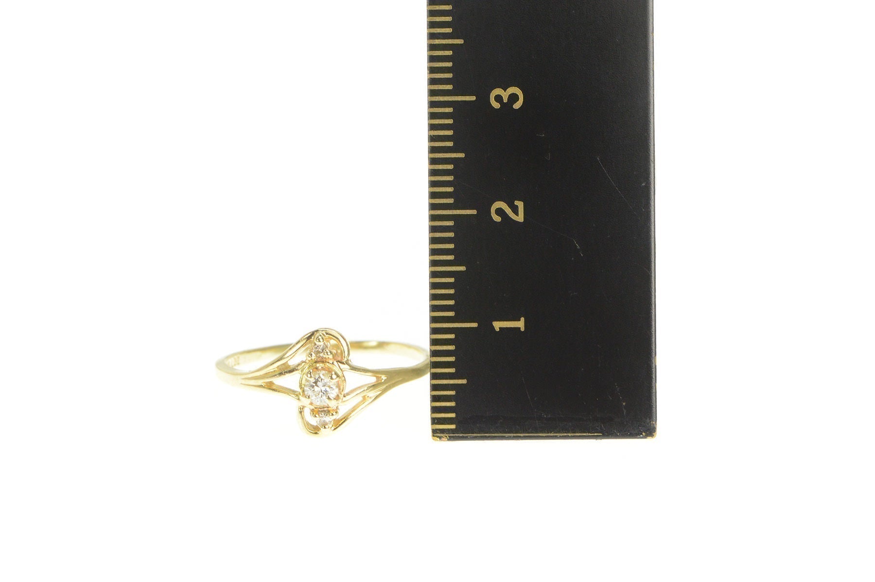 ·Item: 10K Diamond Three Stone Curvy Bypass Promise Ring Size 8.25 Yellow Gold