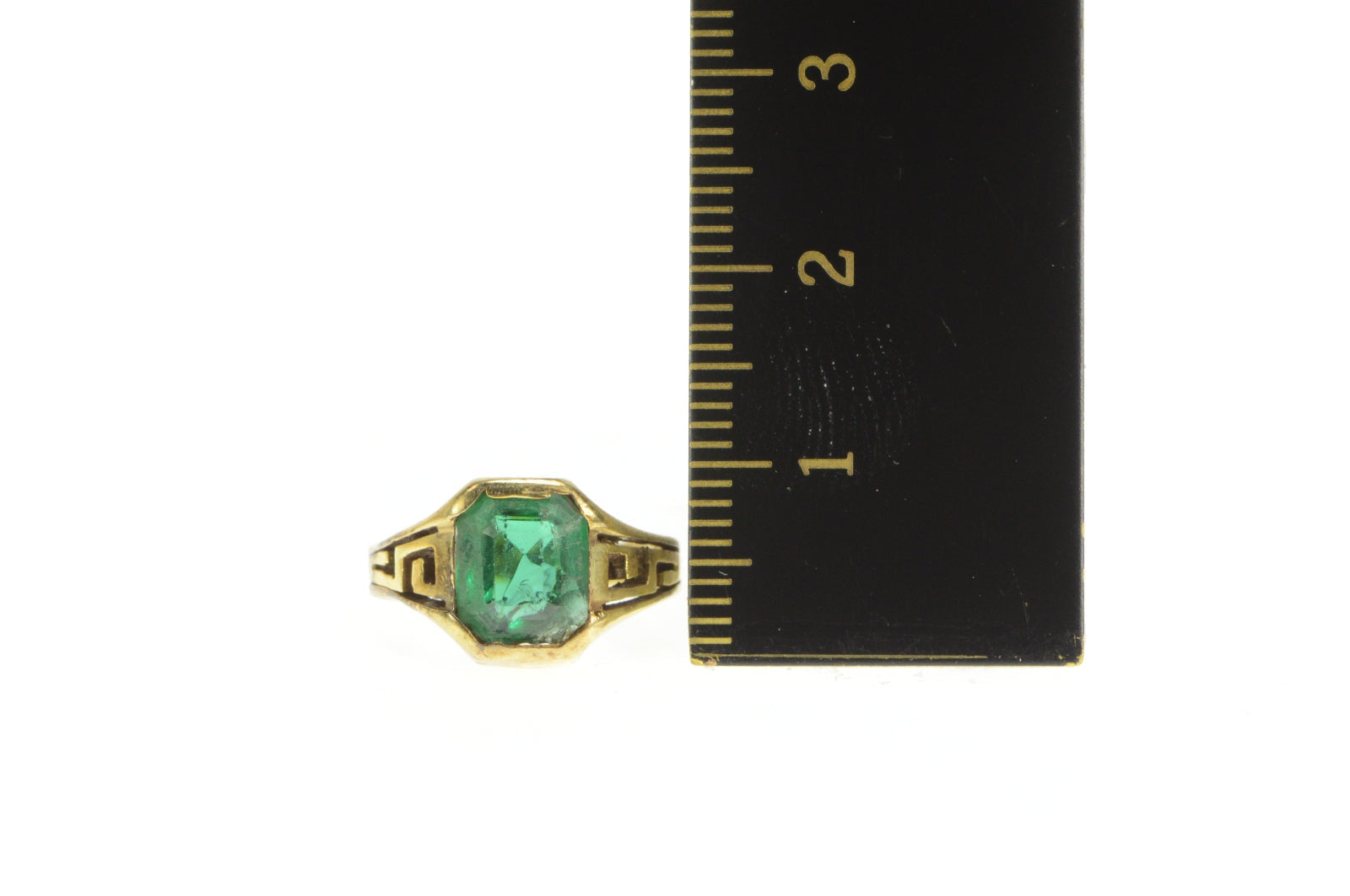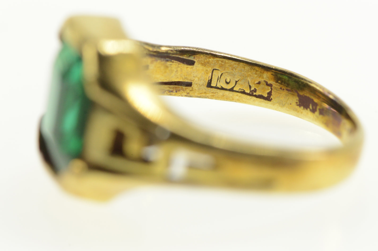 ·Item: 10K Emerald Cut Sim. Emerald Art Deco Ring Size 2.75 Yellow Gold