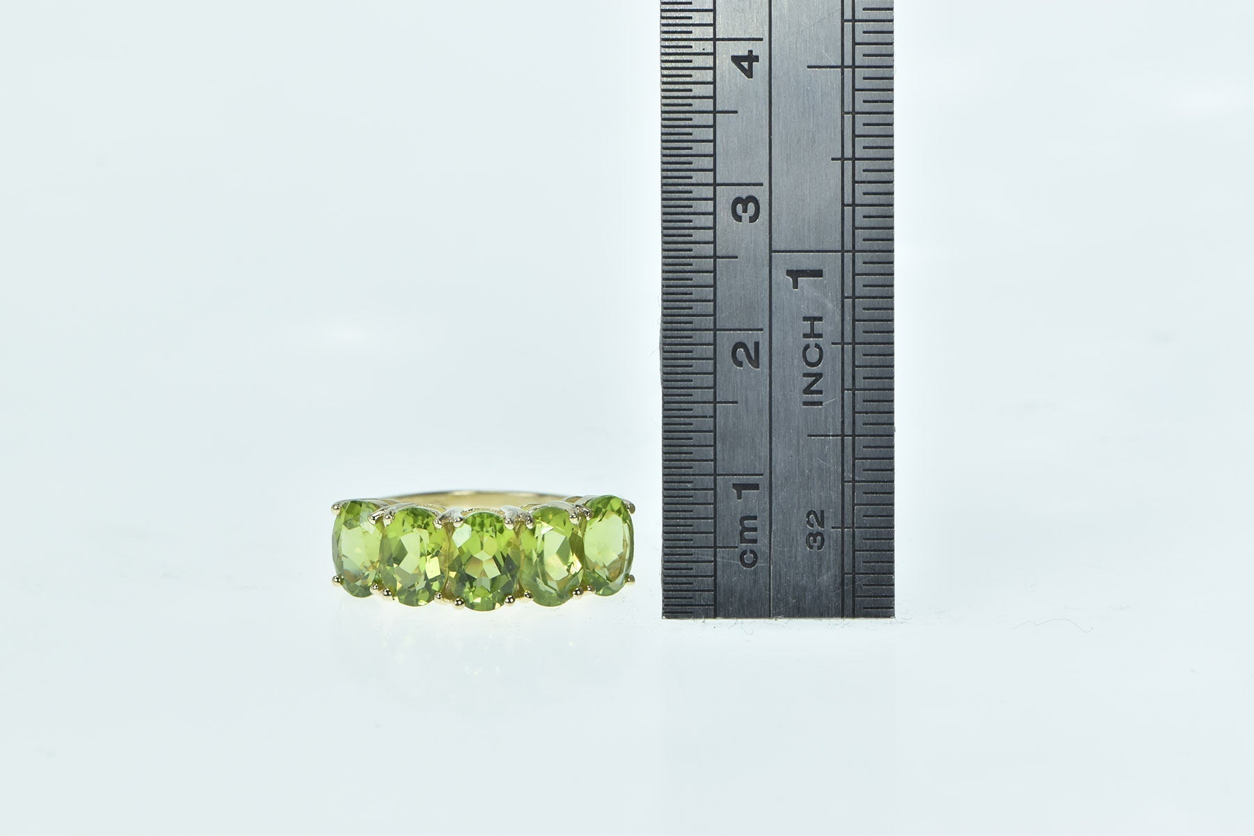 ·Item: 10K Five Stone Oval Peridot Vintage Statement Ring Size 6 Yellow Gold
