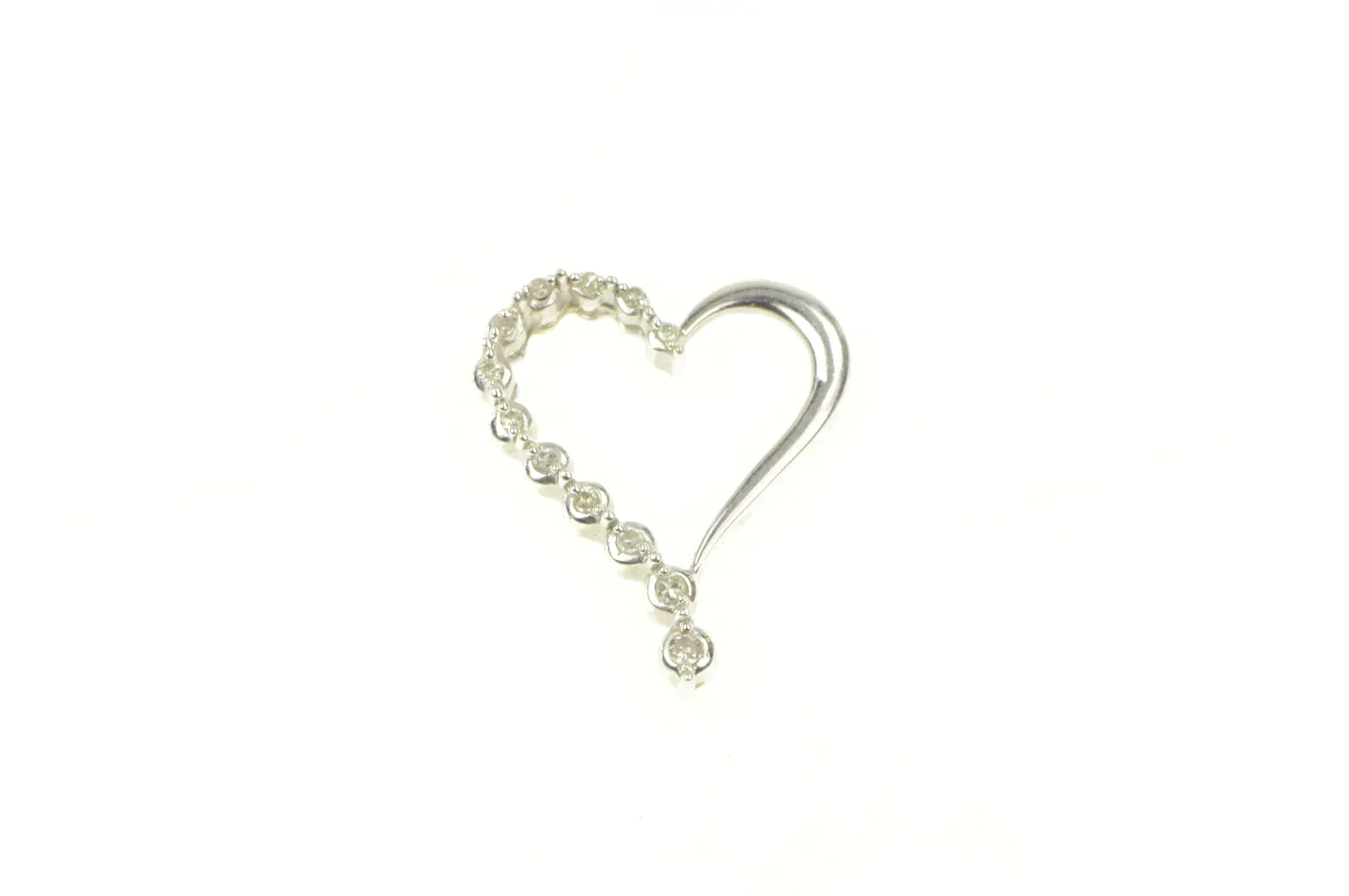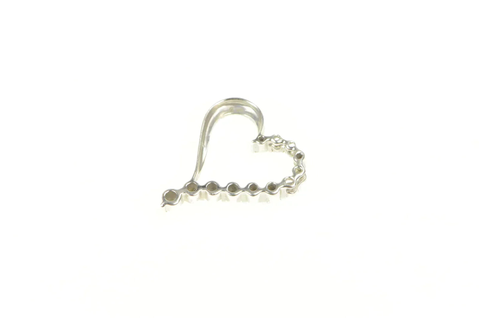 10K Graduated Diamond Wavy Curvy Heart Love Pendant White Gold