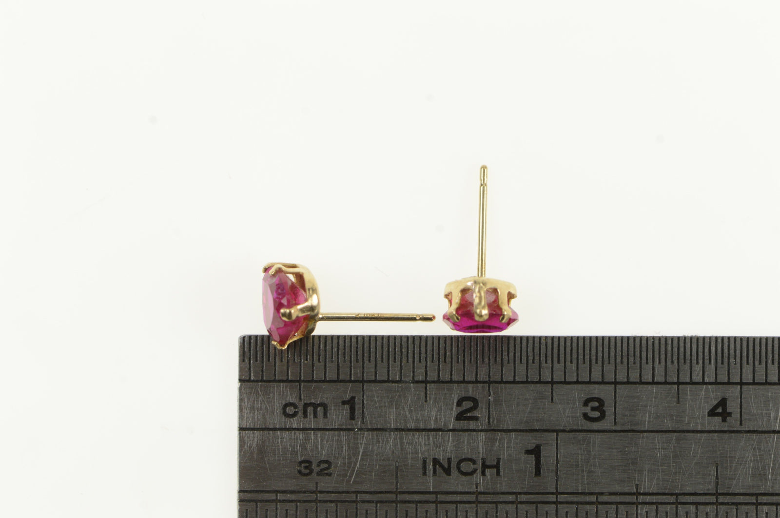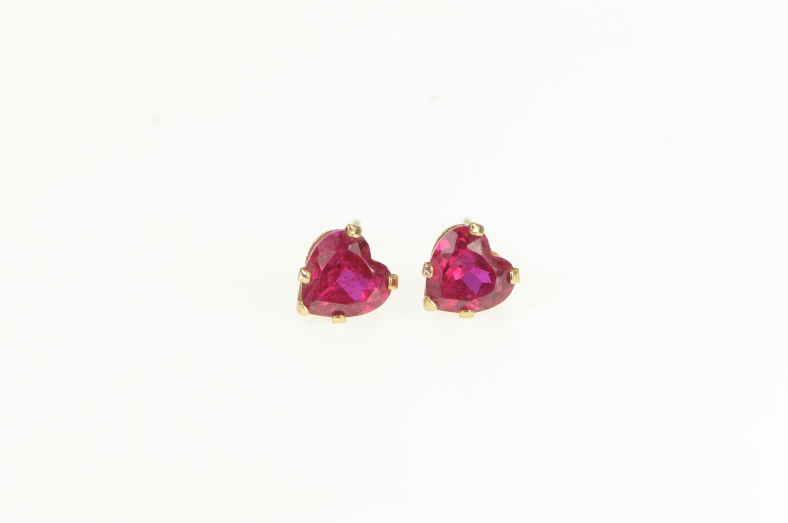 ·Item: 10K Heart Syn. Ruby Vintage Valentine Stud Earrings Yellow Gold
