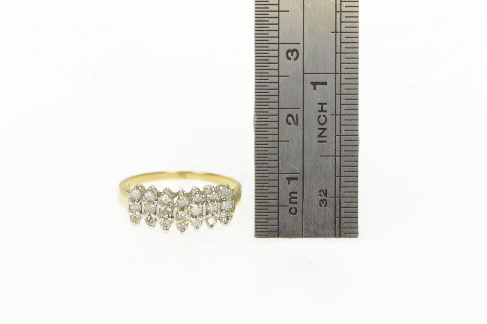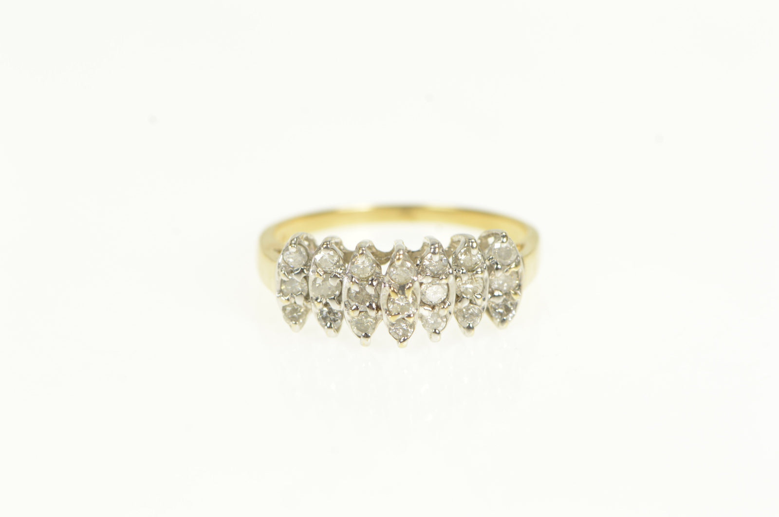 ·Item: 10K Marquise Cluster Diamond Statement Wedding Ring Size 7.25 Yellow Gold