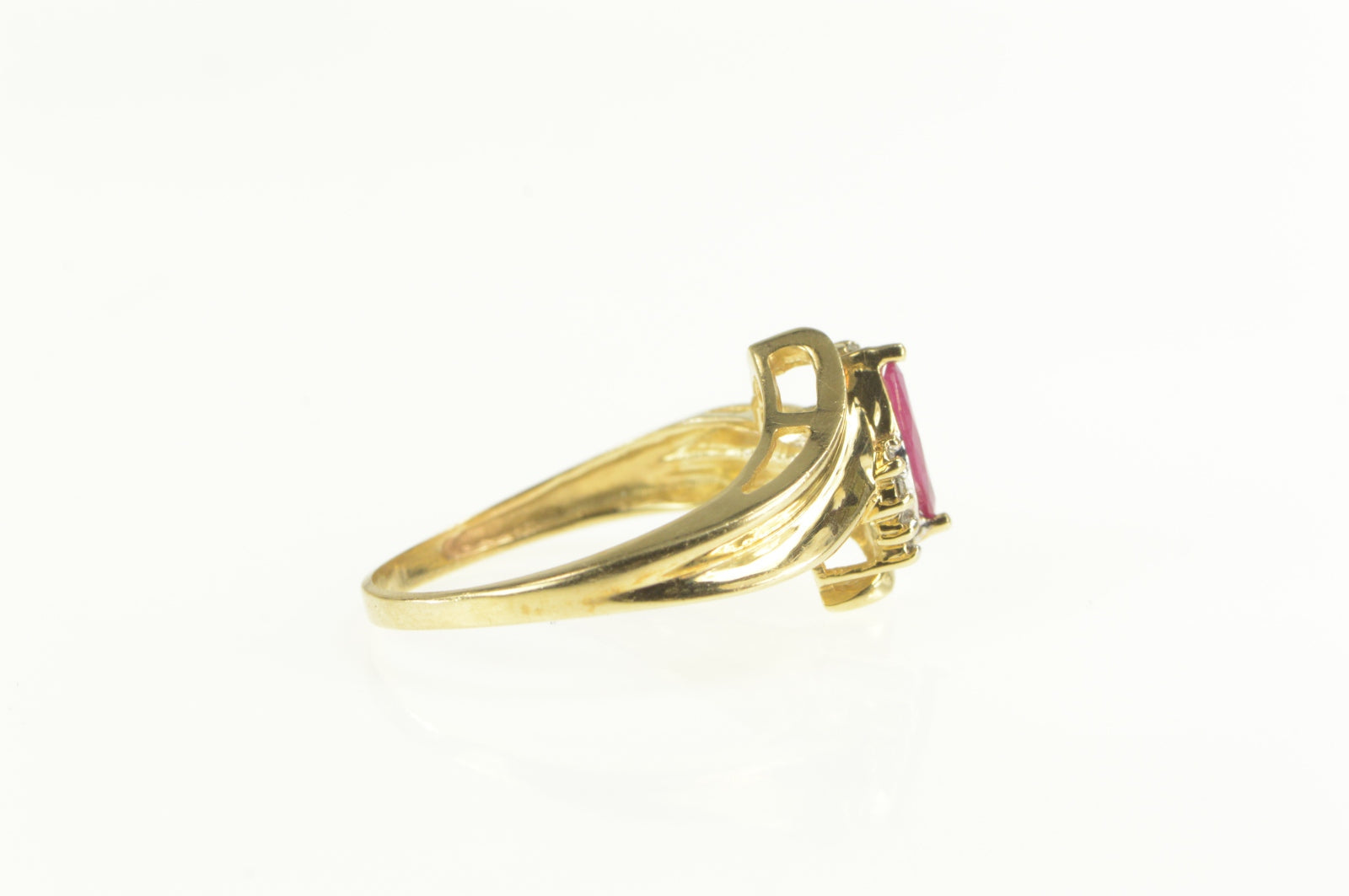 ·Item: 10K Marquise Natural Ruby Diamond Bypass Ring Size 9.75 Yellow Gold