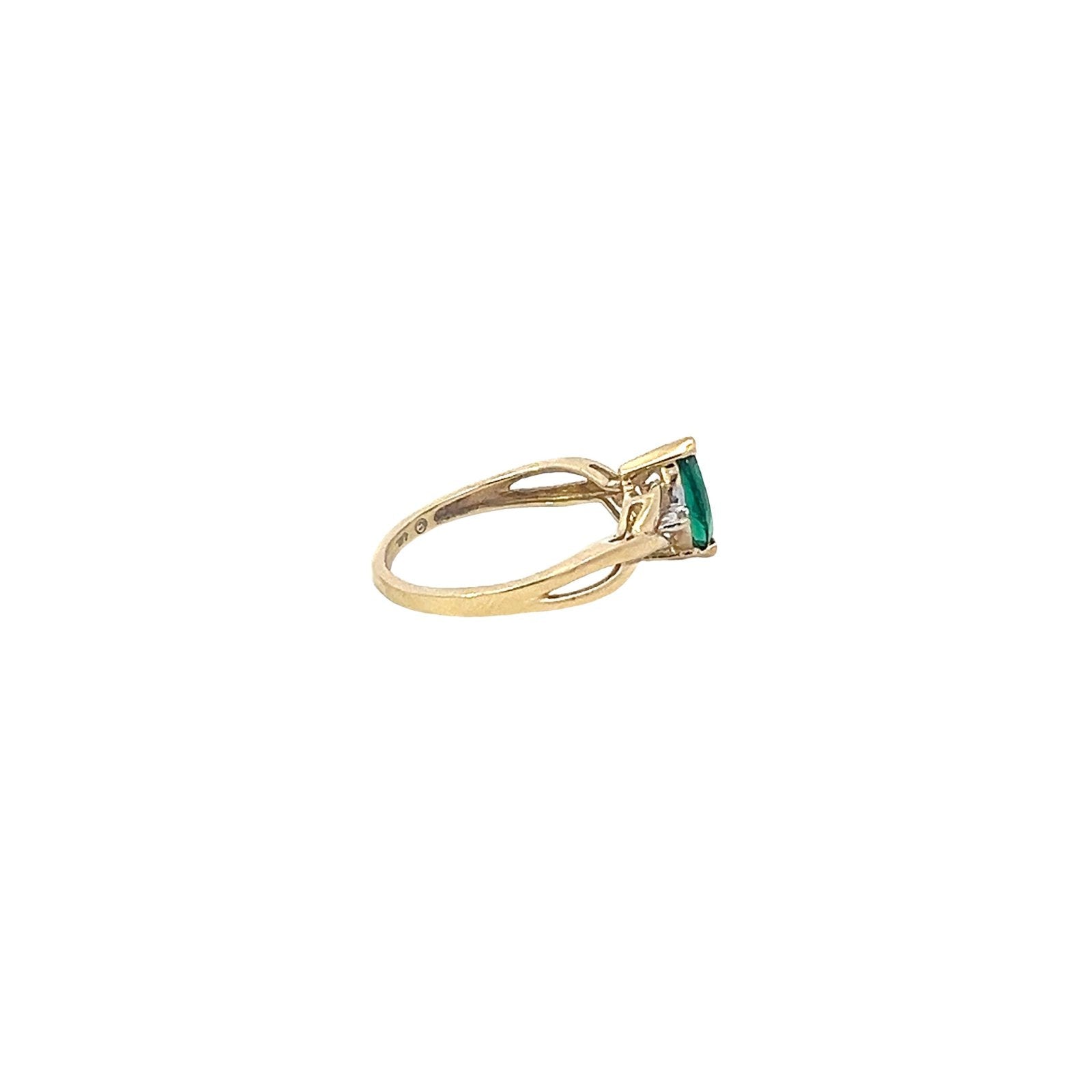 ·Item: 10K Marquise Syn. Emerald Diamond Accent Ring Size 5.5 Yellow Gold