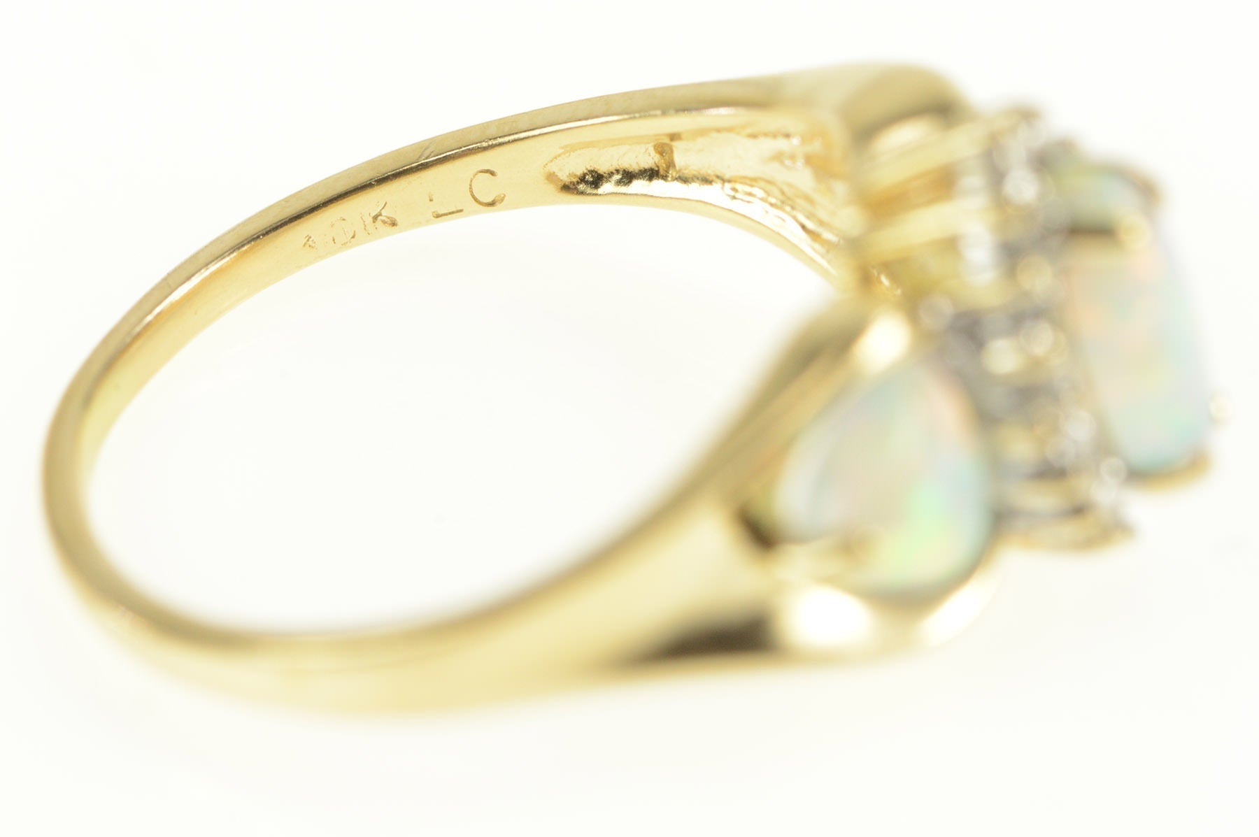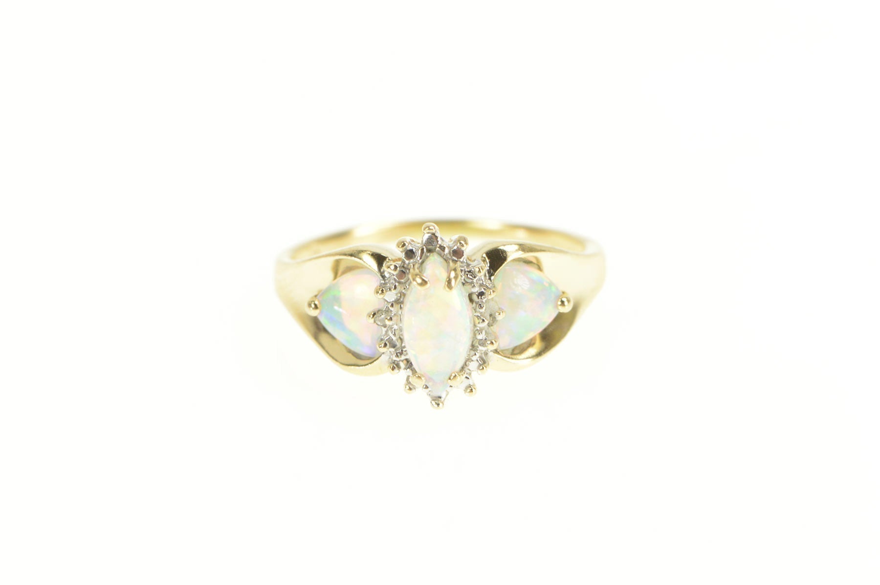 ·Item: 10K Marquise Syn. Opal Diamond Accent Statement Ring Size 6.5 Yellow Gold
