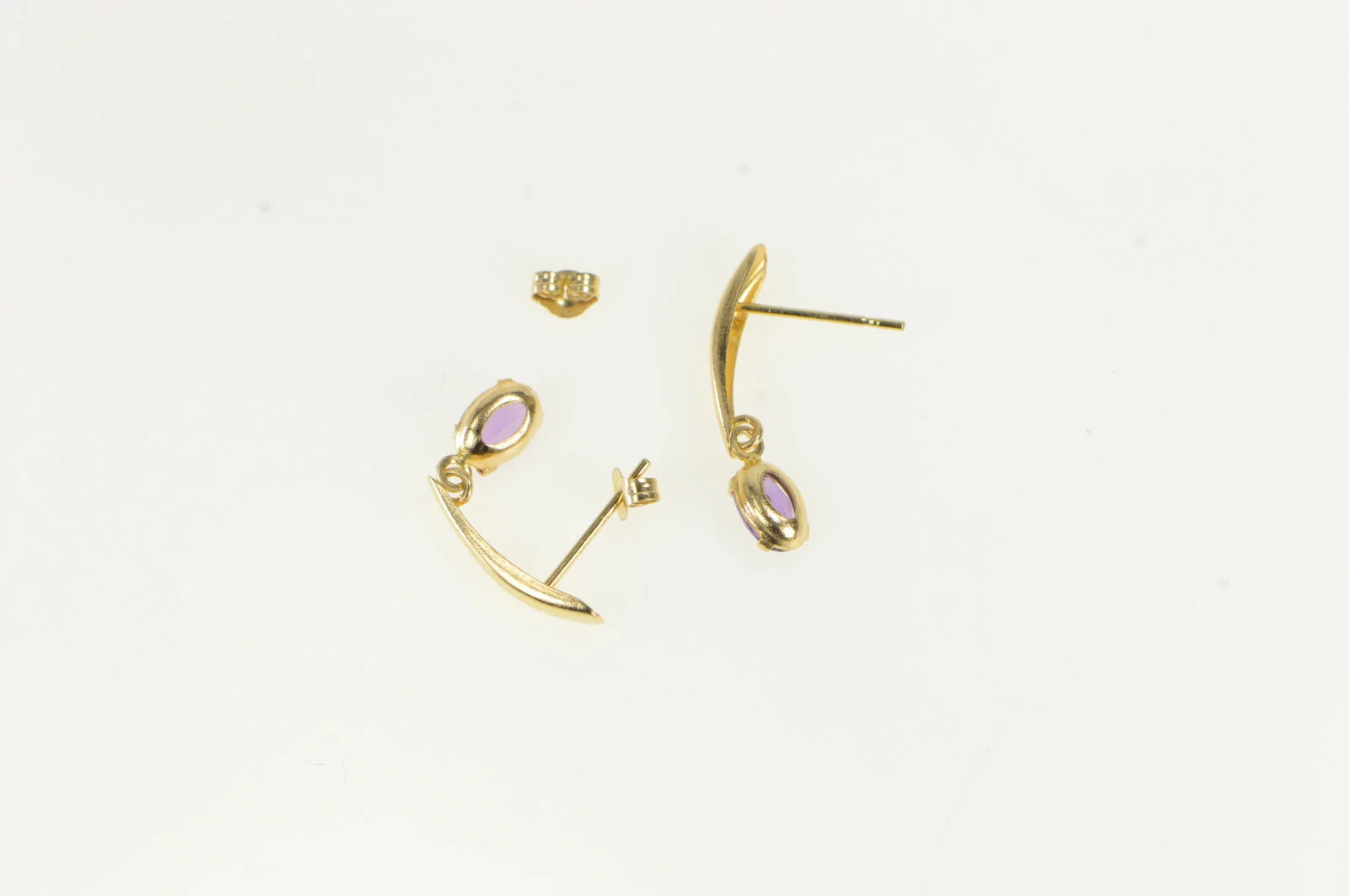 ·Item: 10K Oval Amethyst Dangle Curved Bar Vintage Earrings Yellow Gold