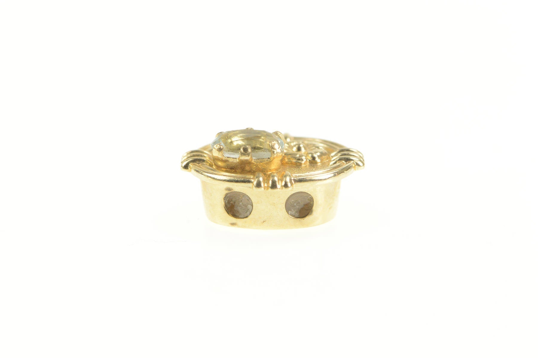 ·Item: 10K Oval Blue Topaz Flower Ornate Slide Bracelet Charm/Pendant Yellow Gold