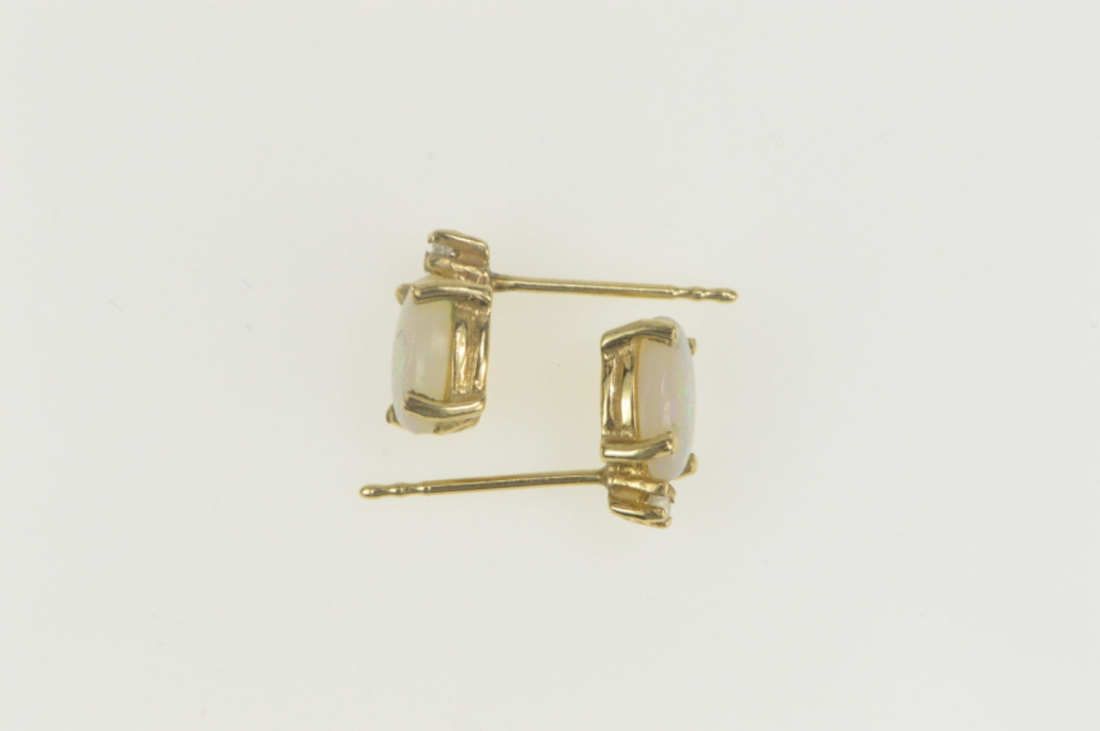 ·Item: 10K Oval Natural Opal Diamond Accent Stud Earrings Yellow Gold