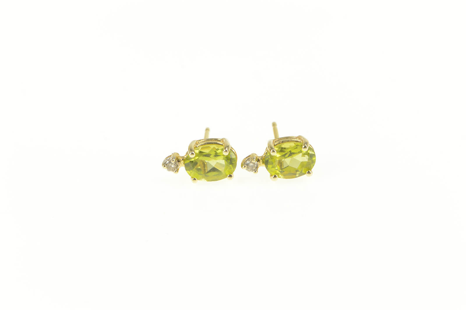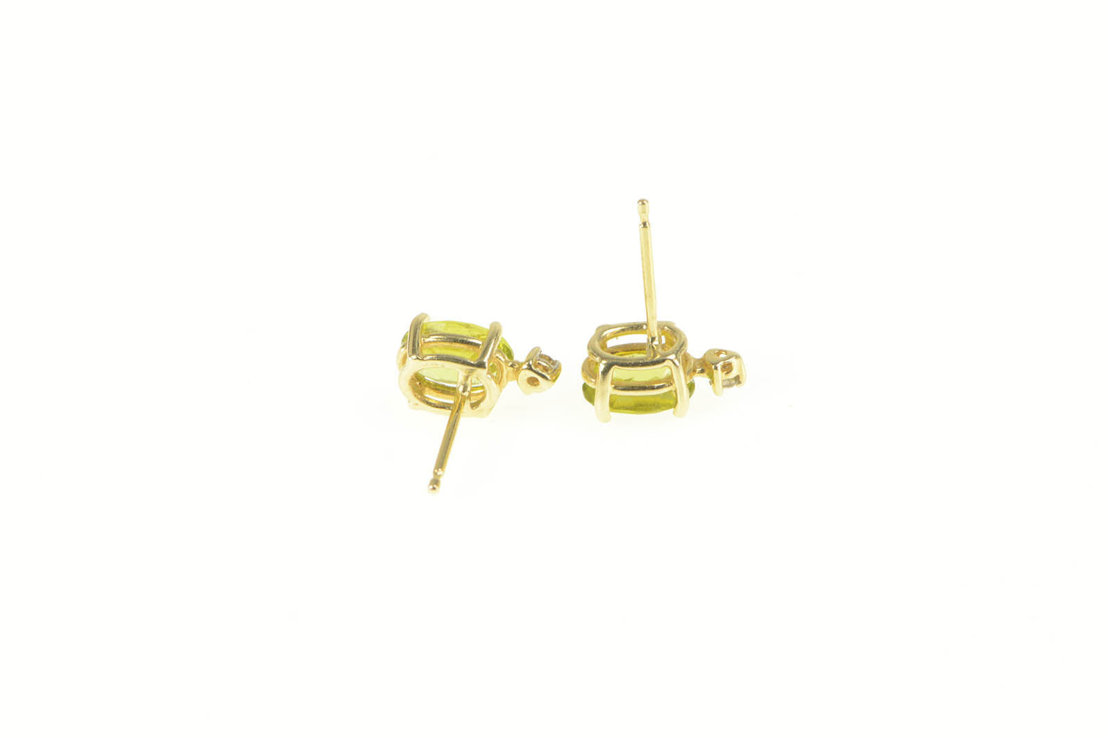 ·Item: 10K Oval Peridot Diamond Accent Classic Stud Earrings Yellow Gold