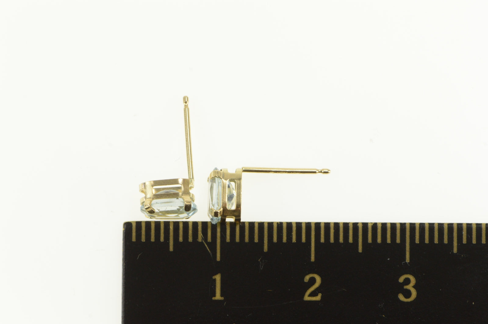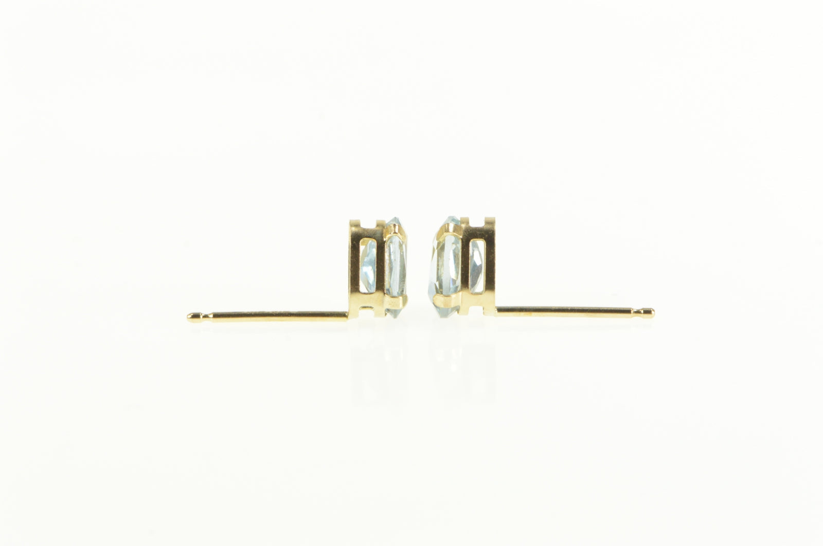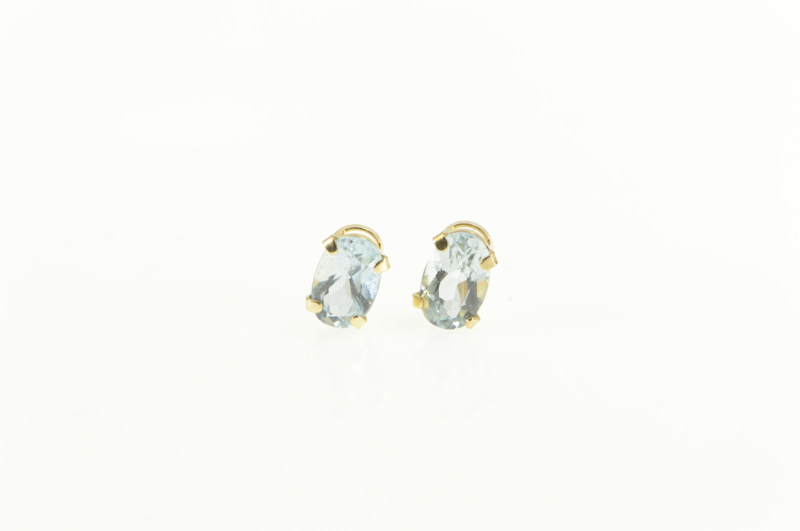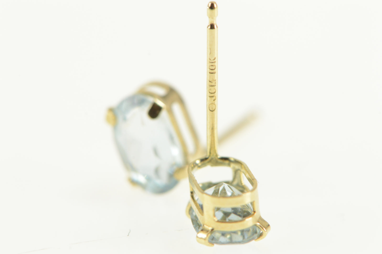 ·Item: 10K Oval Syn. Aquamarine Solitaire Stud Earrings Yellow Gold