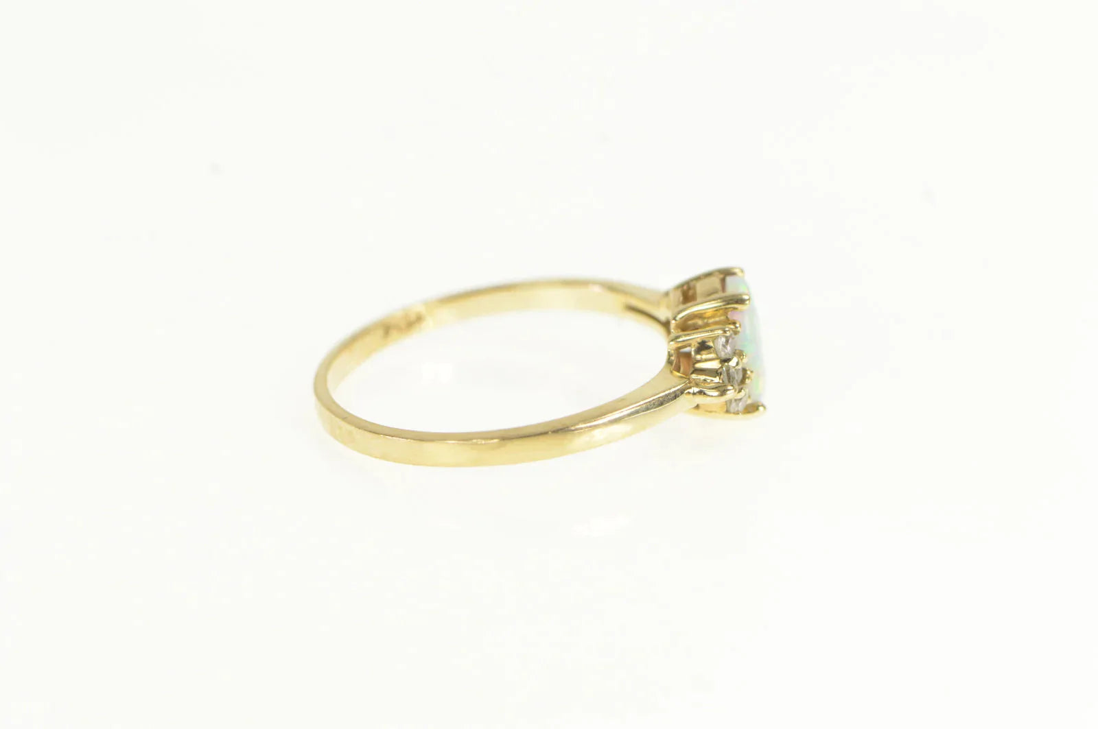 ·Item: 10K Oval Syn. Opal Diamond Cluster Accent Ring Size 7 Yellow Gold