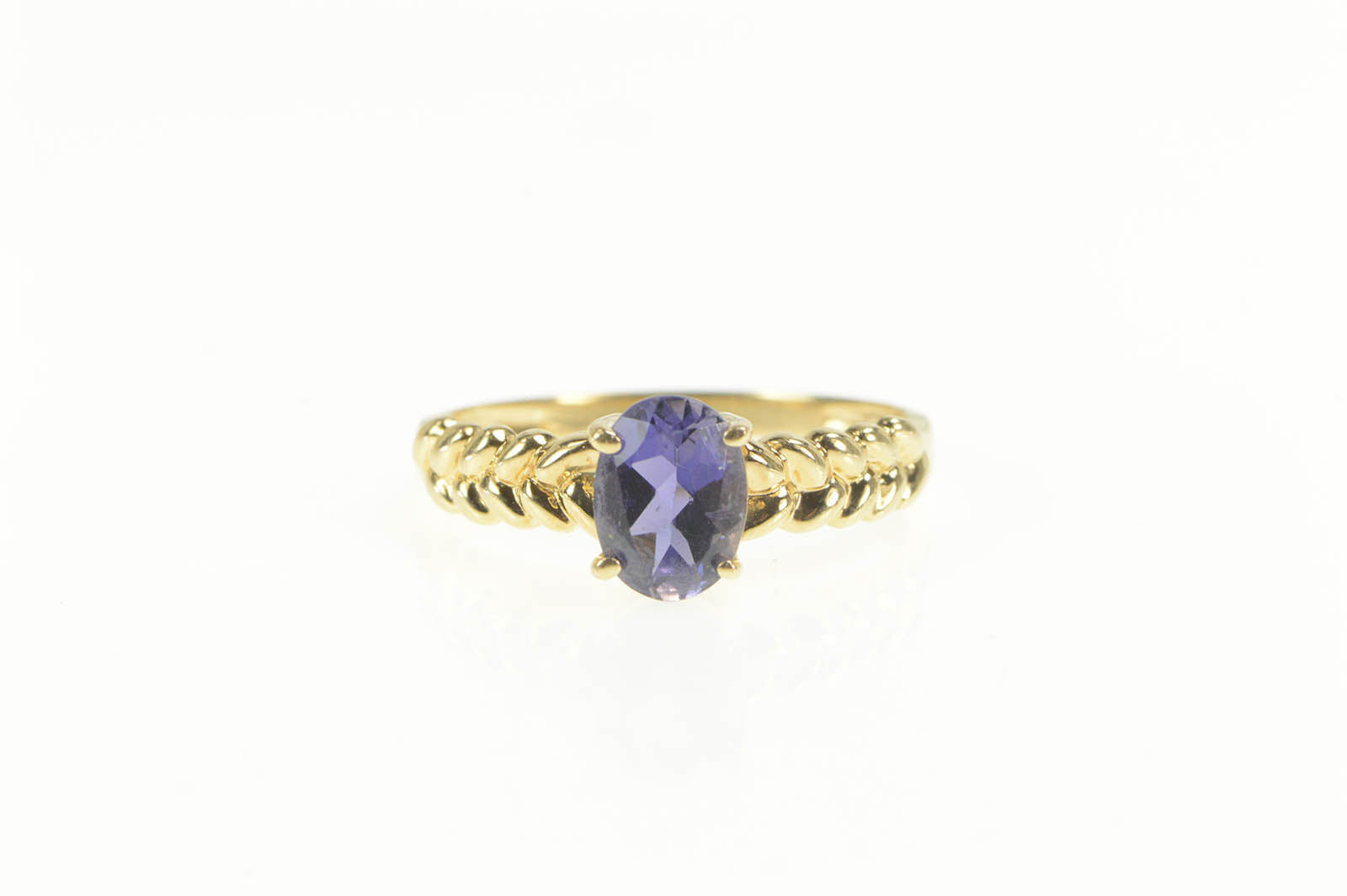 ·Item: 10K Oval Tanzanite Solitaire Braid Designer Ring Size 8.75 Yellow Gold