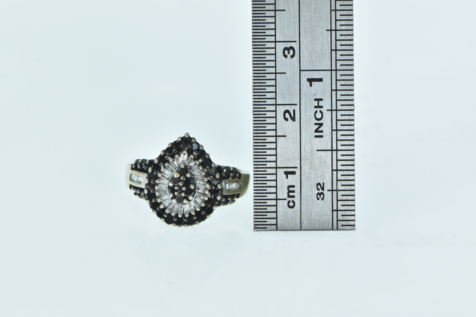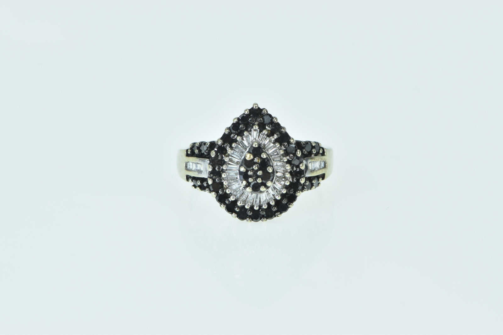 ·Item: 10K Pear Black & White Baguette Diamond Cluster Ring Size 7 White Gold